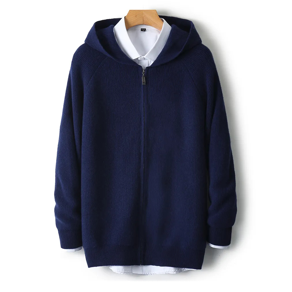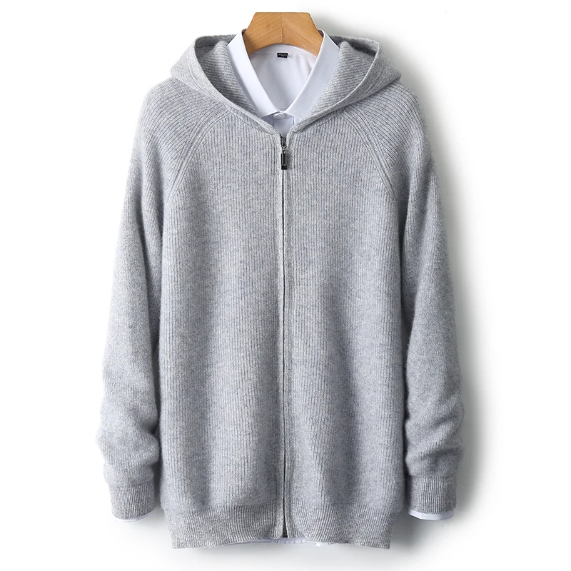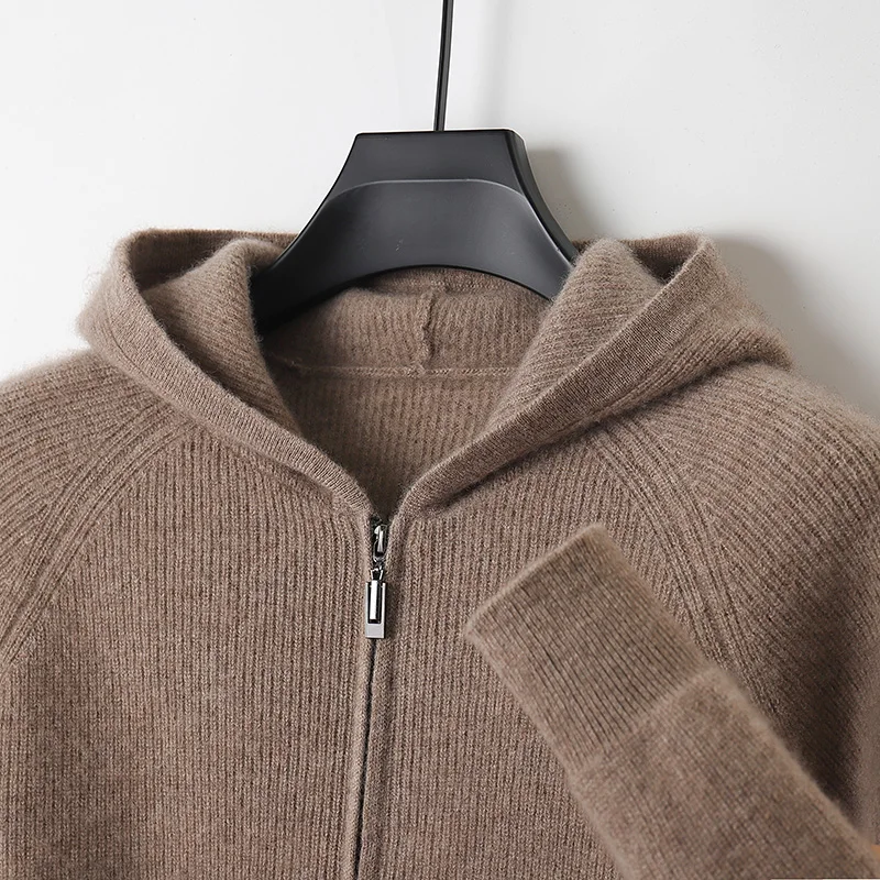 Gilet chaud en laine mérinos zippé à capuche pour homme