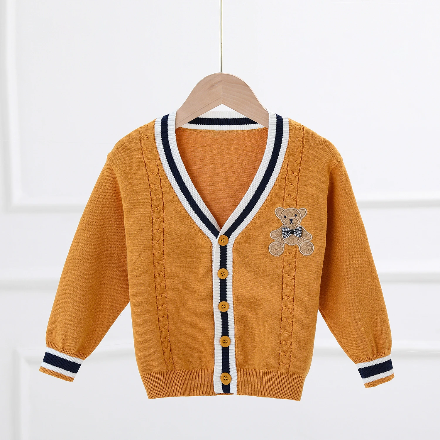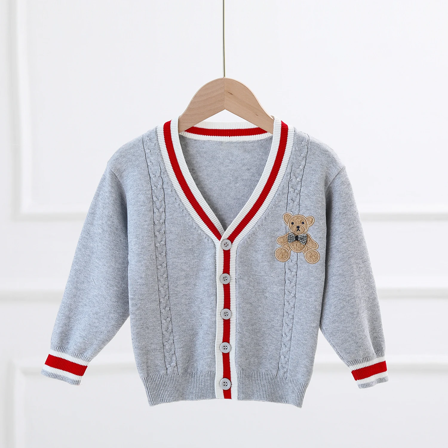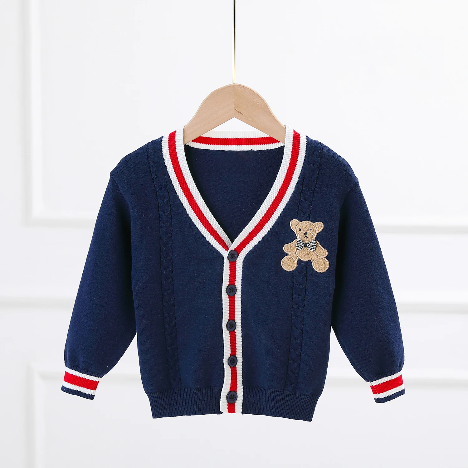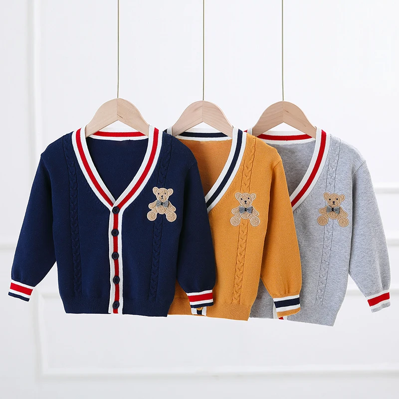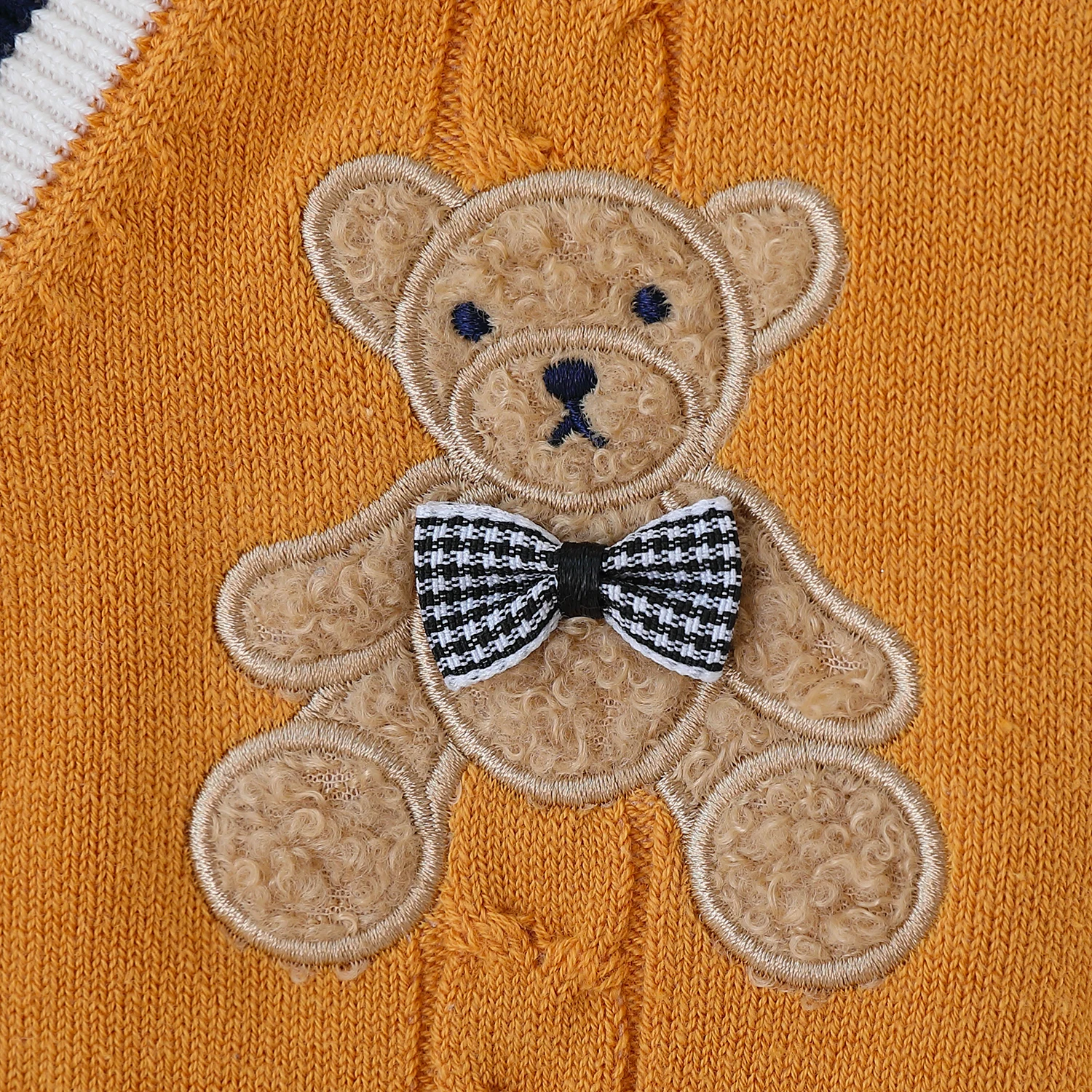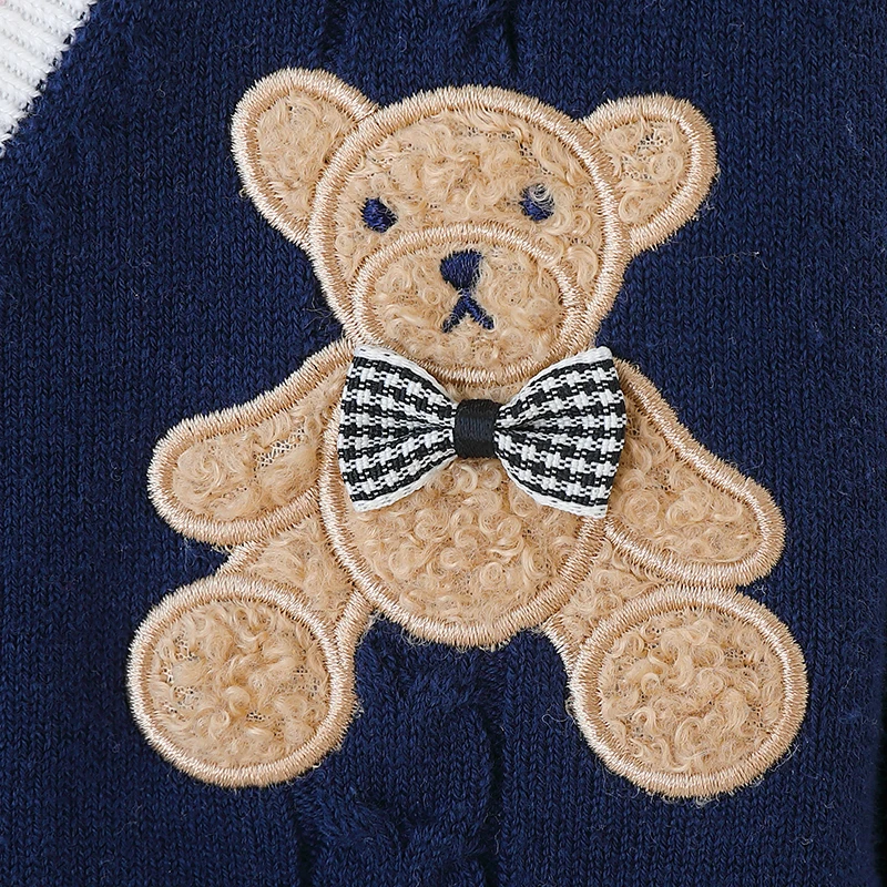 Vous recherchez un gilet col V pour votre petit garçon ? Optez pour cet adorable modèle col V décliné en trois couleurs attrayantes pour les enfants. Le vôtre adorera l’écusson ourson présent sur la poitrine de ce vêtement. Facile à assortir avec n’importe quel bas et simple à porter en toute saison, ce gilet est un incontournable !