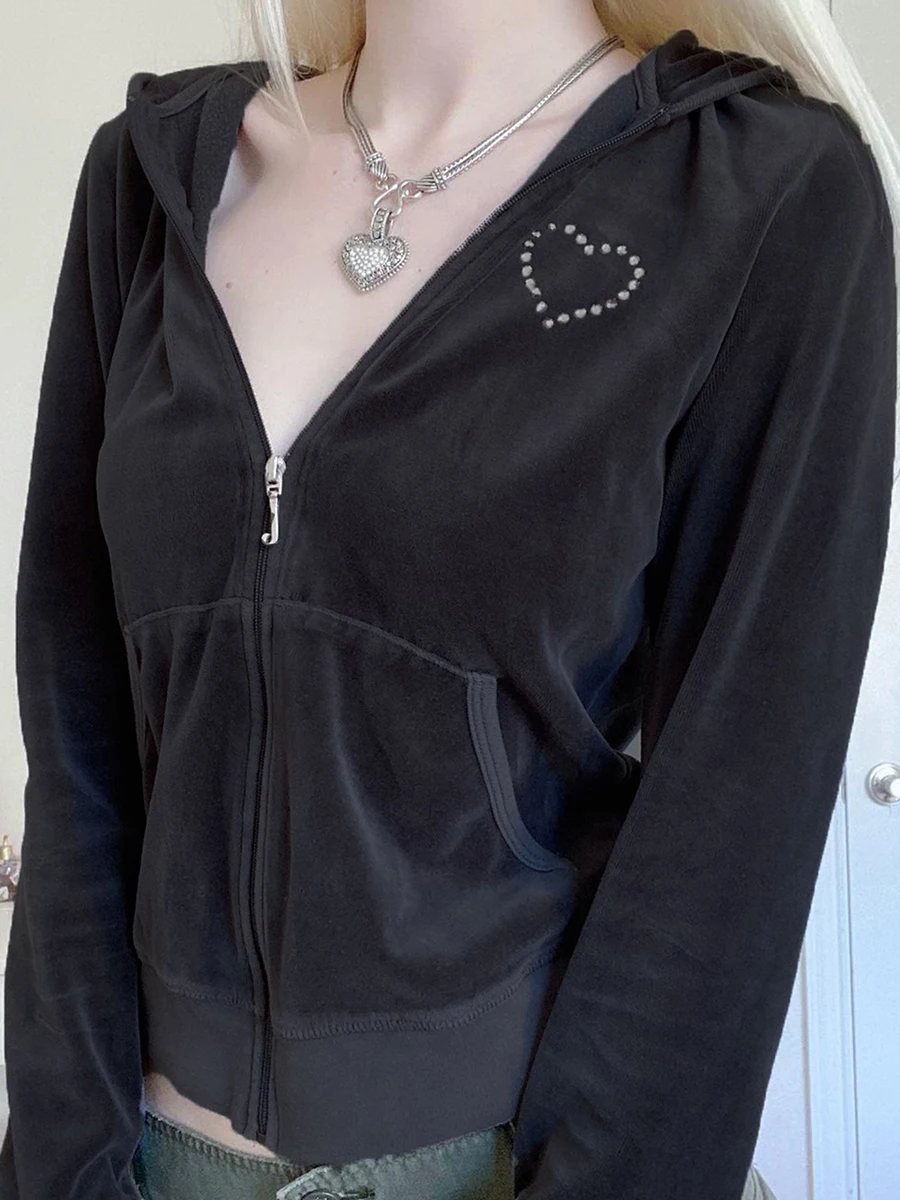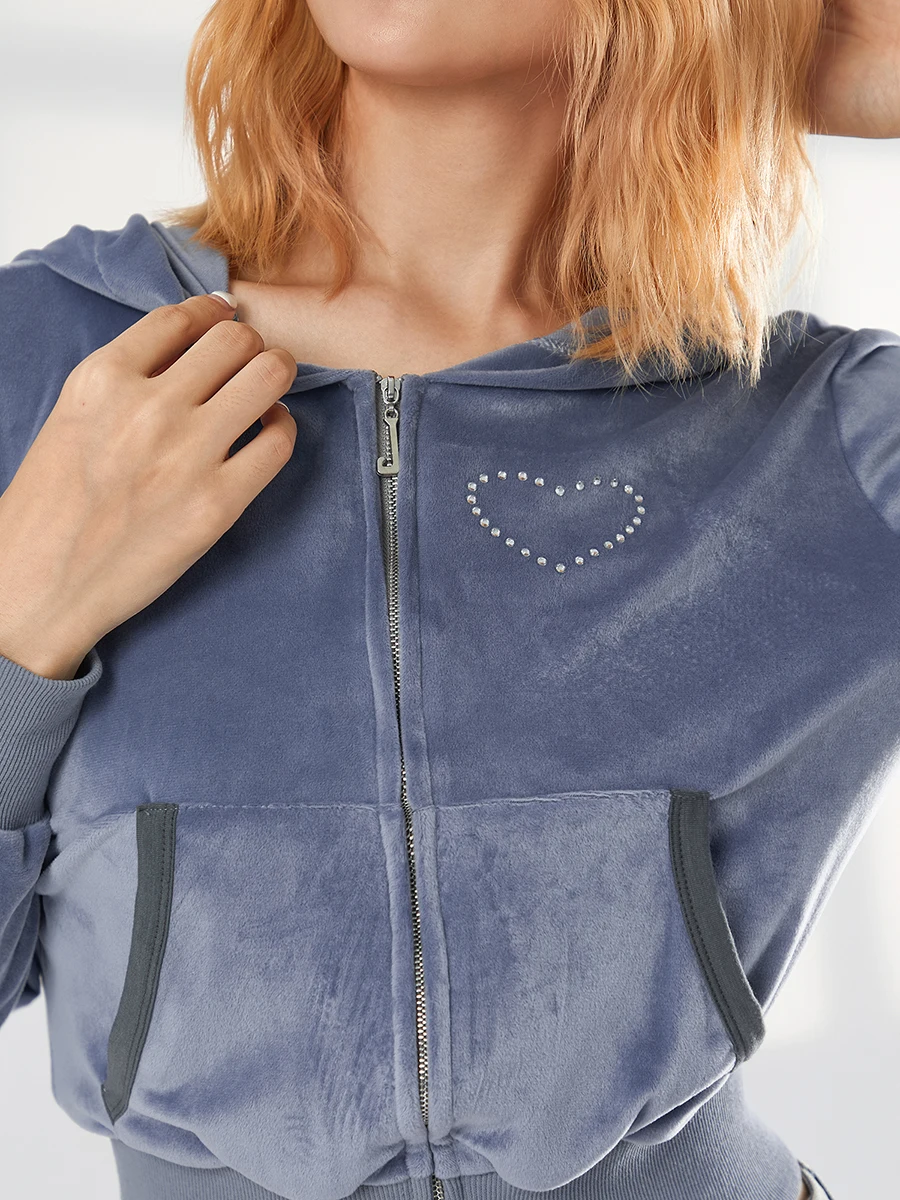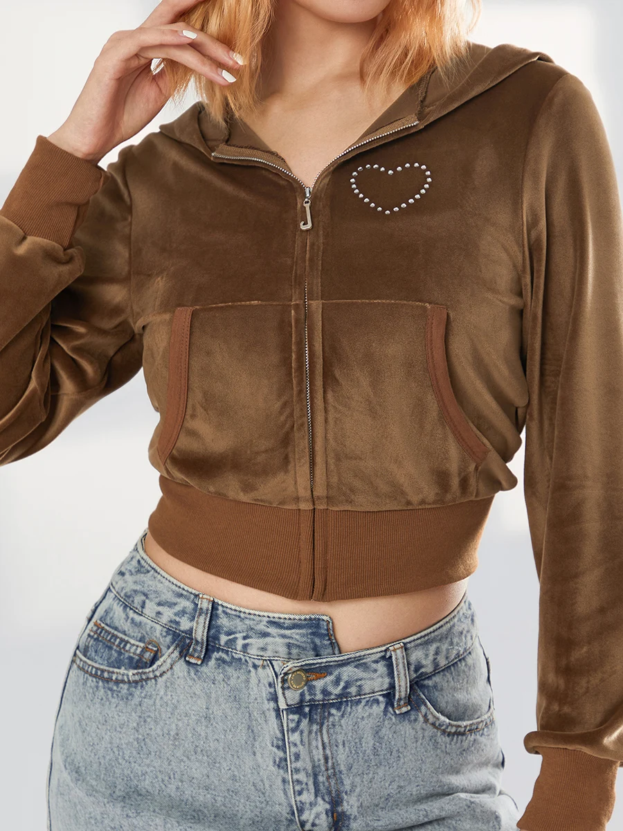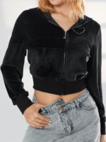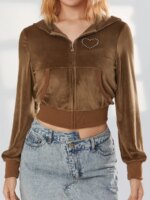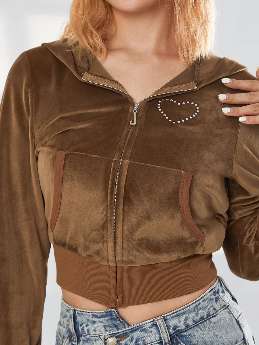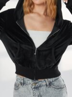 Gilet à capuche court en velours stretch avec poches pour femme