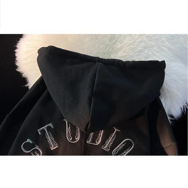 Ce gilet à capuche zippé avec motifs lettres et gros cordon tressé pour femme arbore fièrement les lettres brodées sue le devant et le dos : leur taille devant donne un effet très stylé plutôt streetwear mais en même temps assez cocoon, dû au tissu du gilet qui invite au confort. Au dos, les lettres sont légèrement plus petites et forment un cercle sur presque toute la surface.