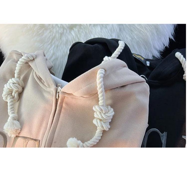 Gilet à capuche zippé avec motif lettres et gros cordon tressé pour femme
