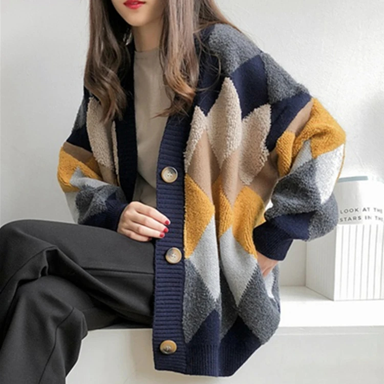 Notre gilet chaud boutonné à motifs losanges pour femme est fait dans un mélange de matières qui le rendent chaud et confortable. En polyester et acrylique, ce gilet maintiendra votre corps à la bonne température. Grâce au spandex, la maille est extensible et vous offre beaucoup de confort. Le tricot de cette maille a une finition en bouclette pour apporter une touche douce et un visuel cosy.