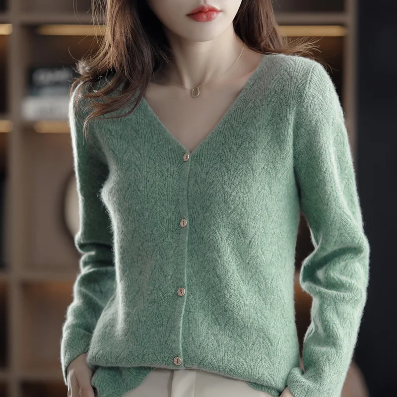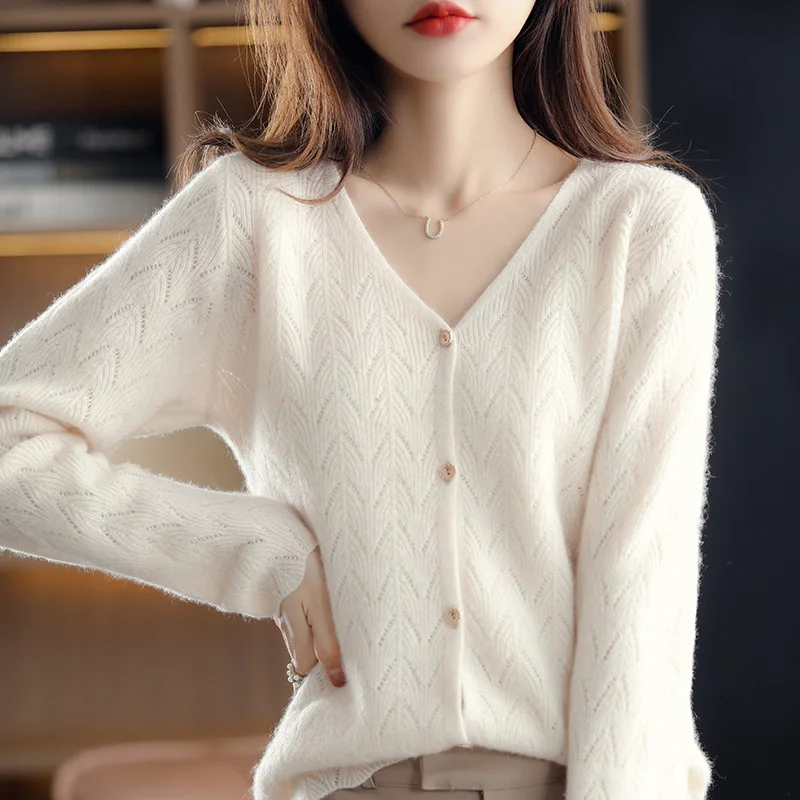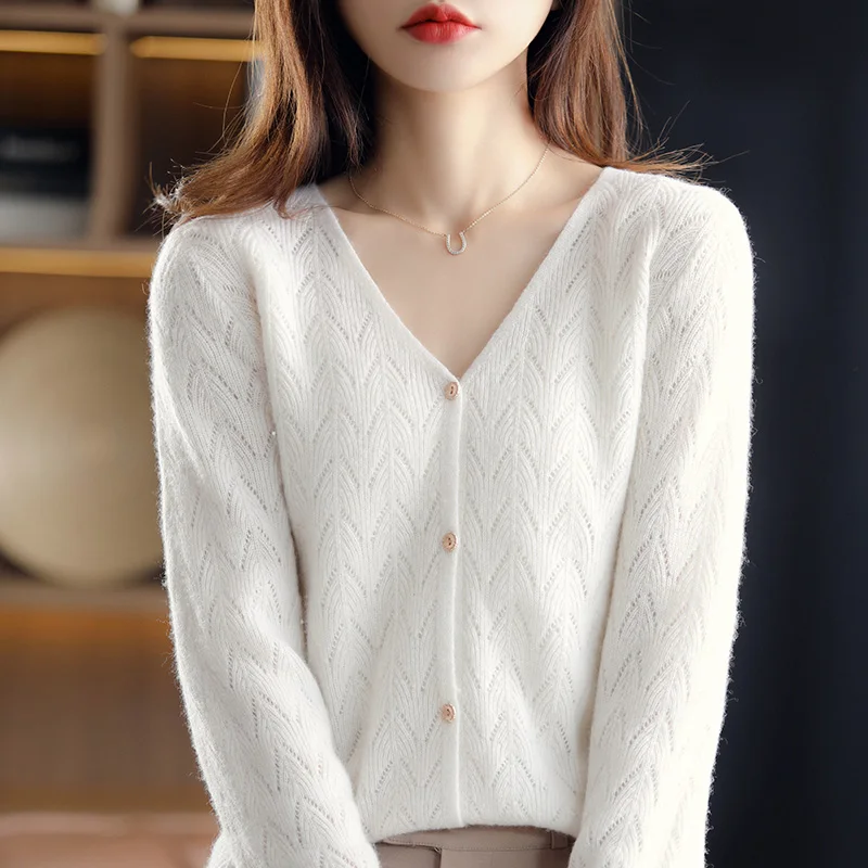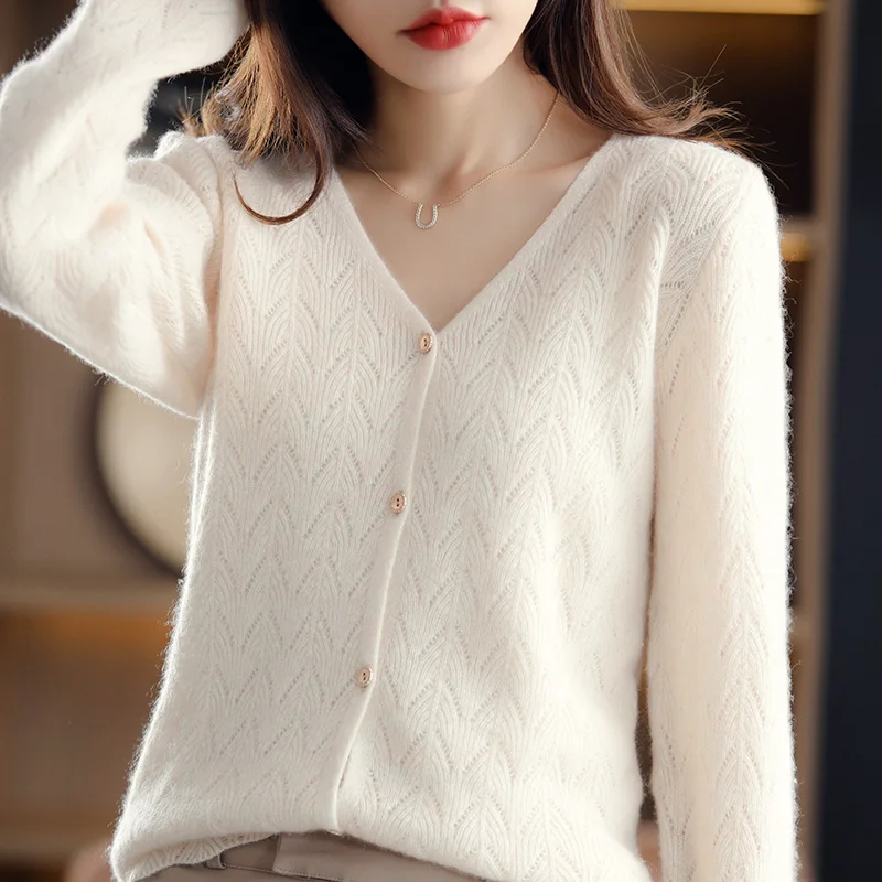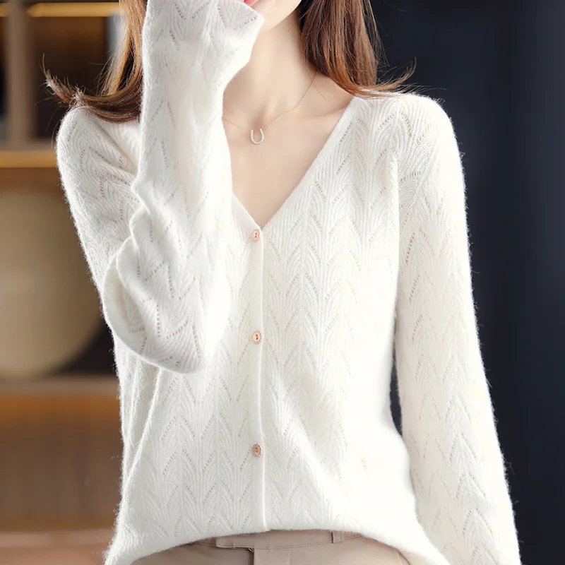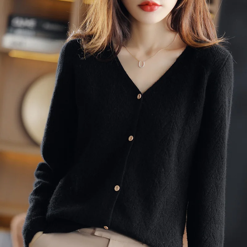 Notre gilet chaud tricoté en cachemire met en valeur le cou avec col en V et crée une silhouette flatteuse et très élégante. Vous pouvez le porter ouvert pour un look décontracté ou le fermer pour une allure plus formelle. Vous pourrez le porter avec toutes vos tenues en étant sûre que vous n'aurez pas froid.