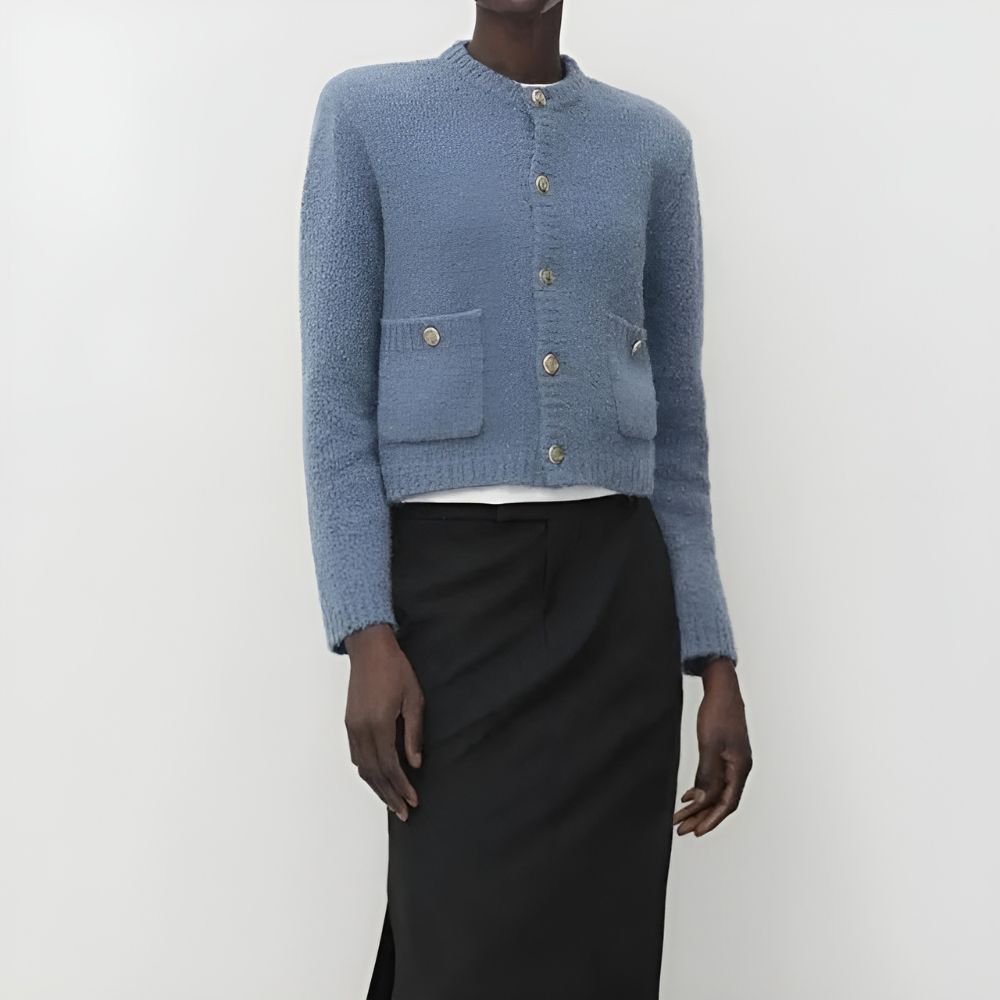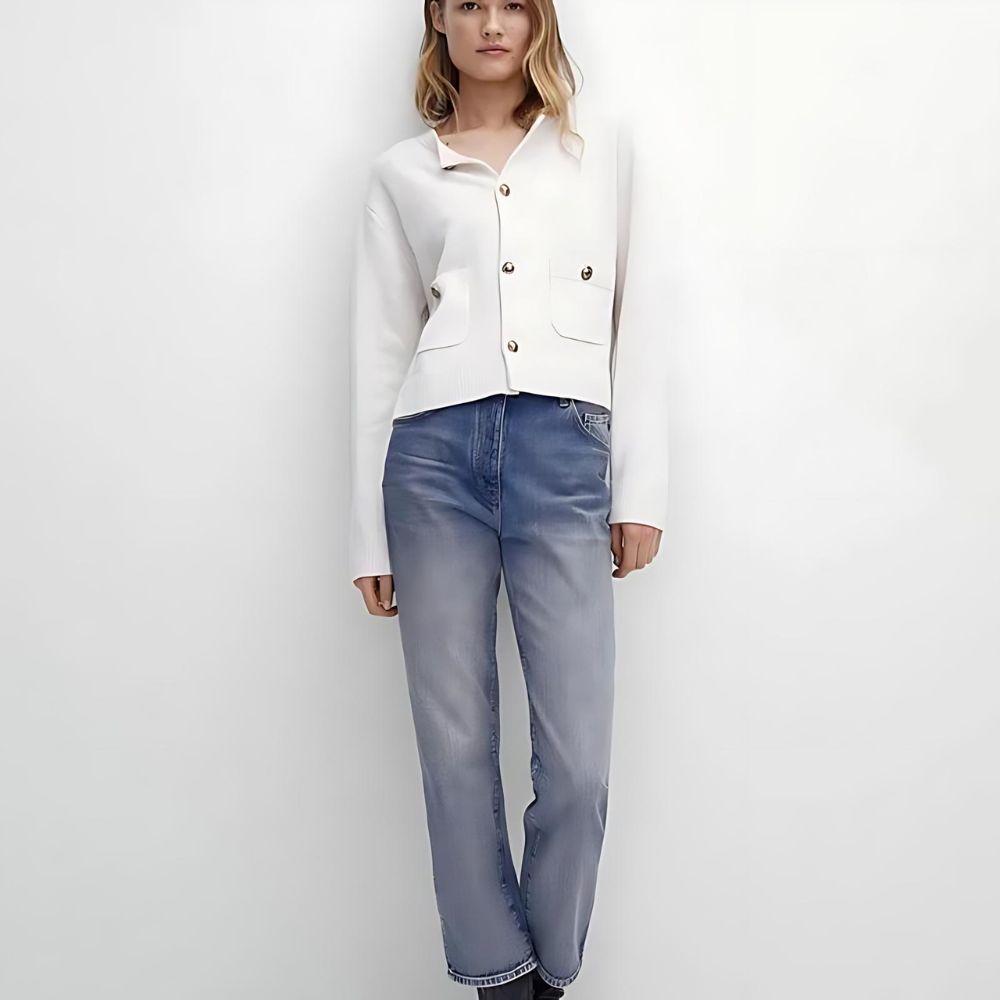Les boutons rétro ajoutent un élément de charme tout en fonctionnant parfaitement pour fermer le gilet sur le devant. Ce gilet combine élégamment praticité et esthétique vintage, le rendant parfait pour celles qui cherchent à ajouter une touche nostalgique à leur garde-robe.