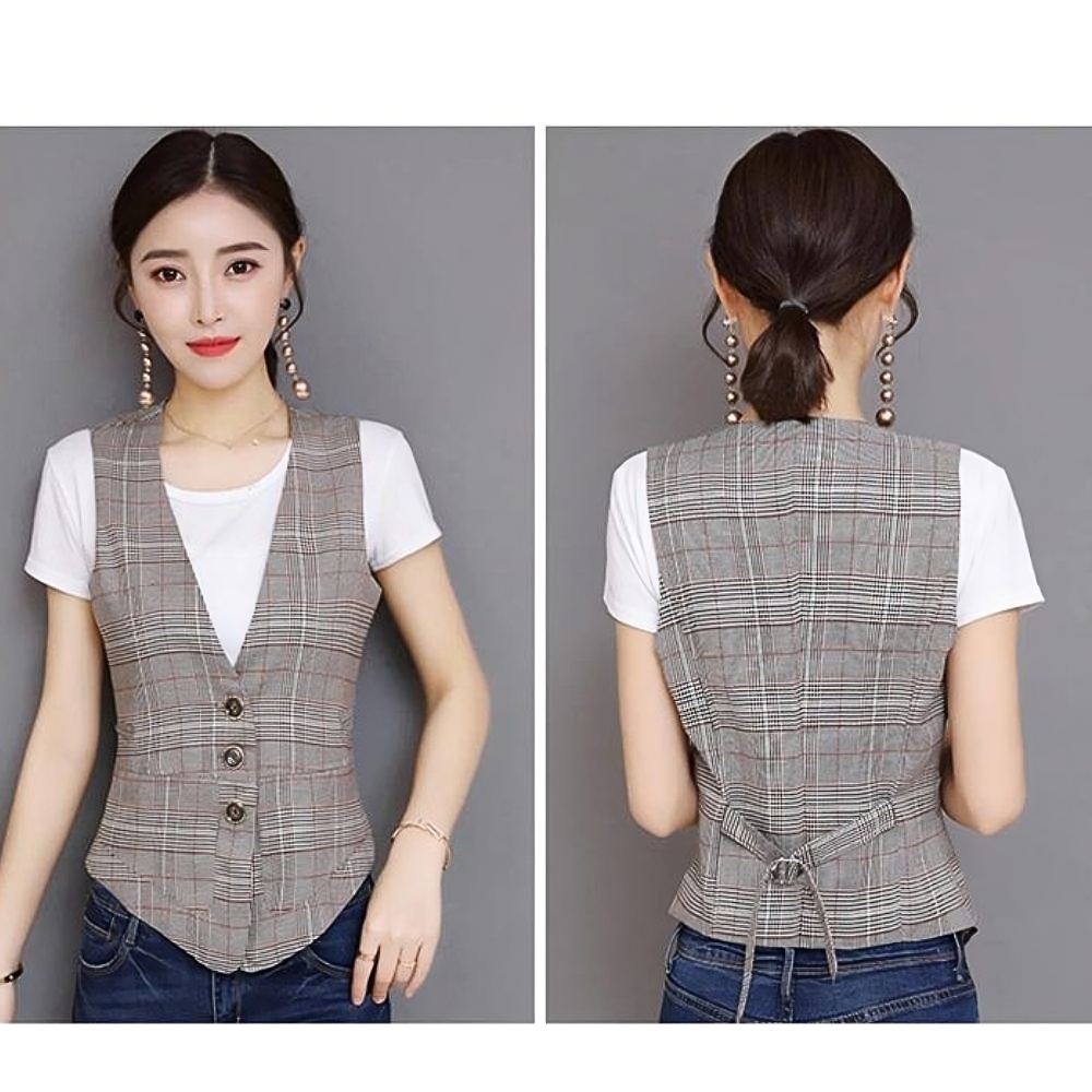 Gilet de costume à carreaux pour femme