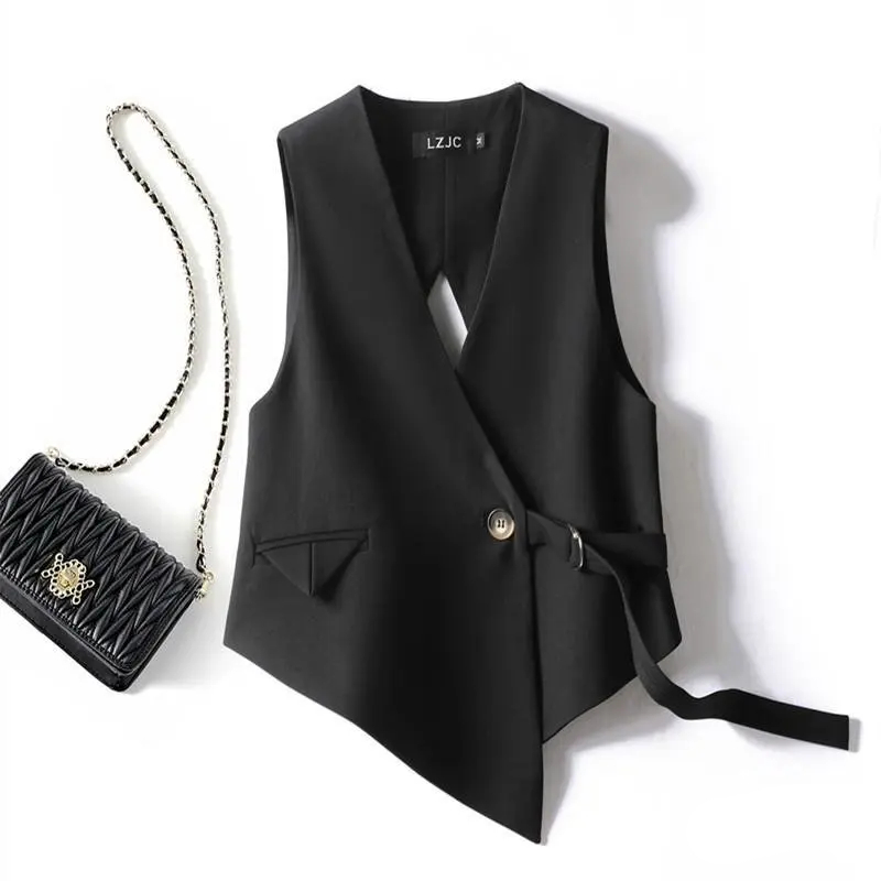 Vous aimez les looks soignés qui mettent en avant votre professionnalisme et votre sérieux ? Optez pour ce gilet de costume pour femme asymétrique au look rétro chic ! Il vous permettra d'apparaître soignée, chic et professionnelle en toute circonstance. Décliné en deux couleurs intemporelles, c'est une pièce que vous pourrez porter de longues années.