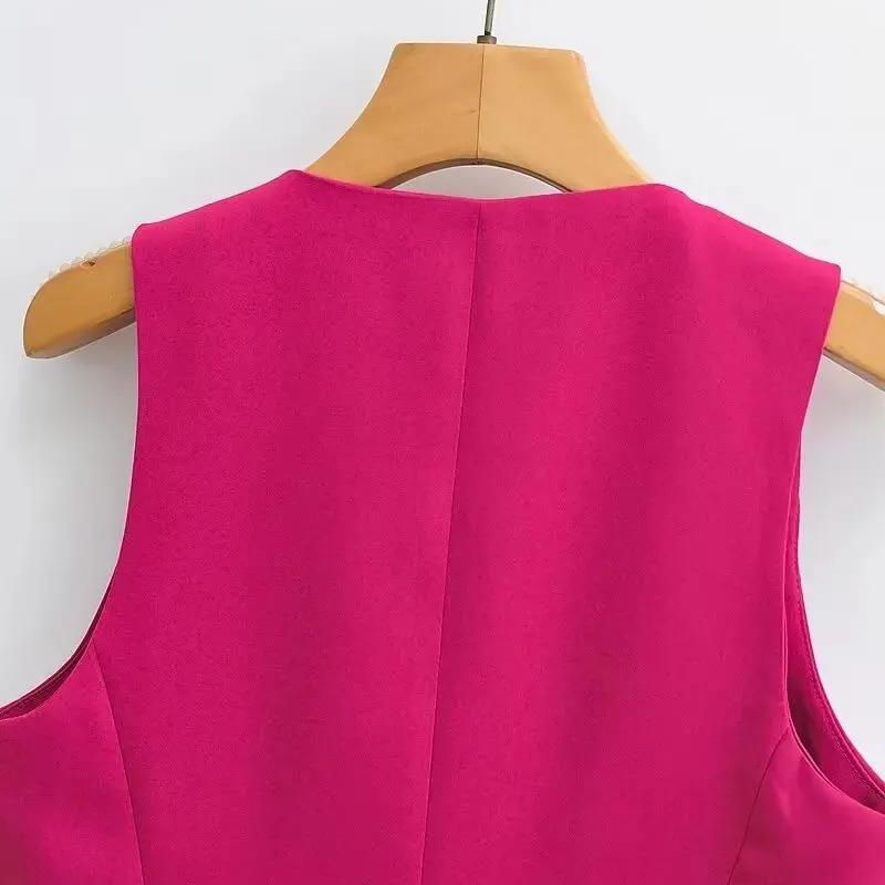Vous êtes une femme féminine et coquette et adorez changer de look en fonction de votre journée ? Optez pour ce gilet de costume pour femme à la couleur flamboyante ! Porté seul avec un pantalon de costume ou un simple jean, il instillera à votre journée une bonne dose d’énergie et de gaieté !