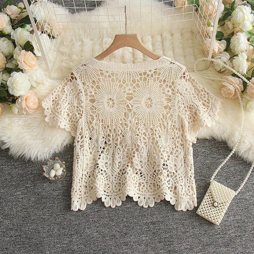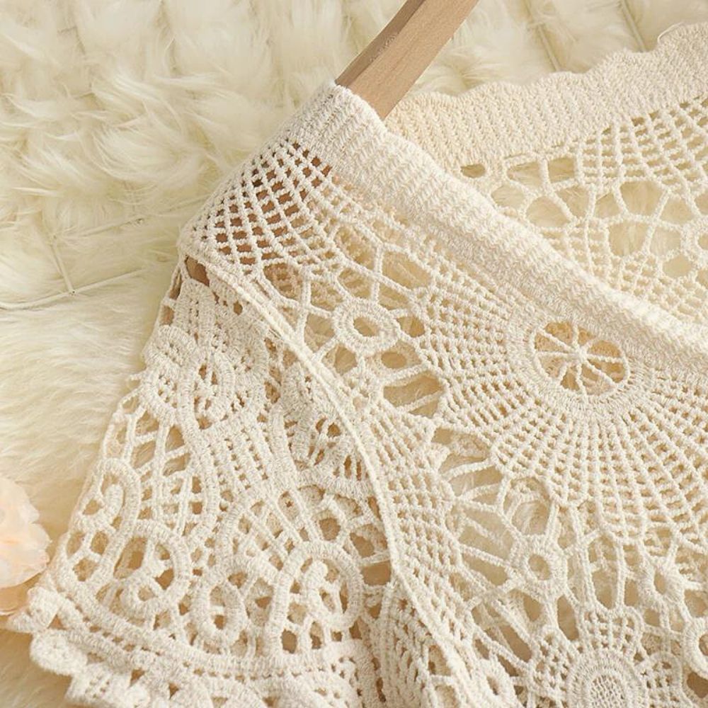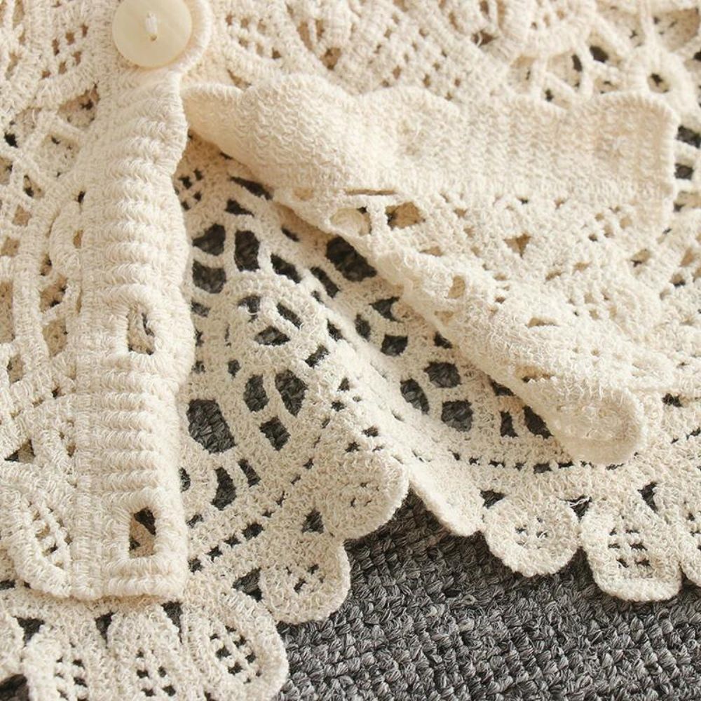 Embrassez un style bohème et féminin avec ce gilet en crochet. Sa coupe courte et aérée est parfaite pour superposer sur une longue robe fluide avec des sandales, créant une allure romantique et éthérée.