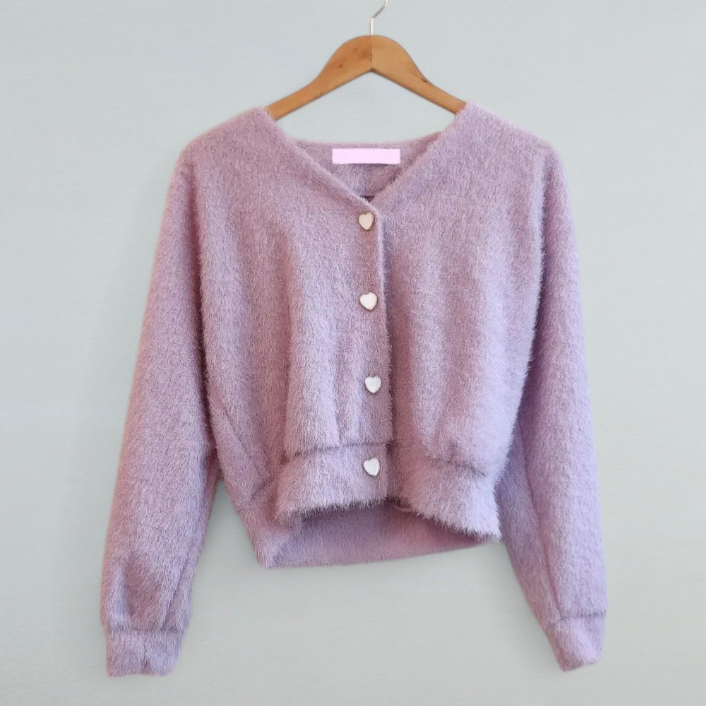 Envie d’apporter une touche de fraîcheur printanière à votre dressing ? Ce gilet doux violet est une invitation à la douceur et à la féminité. Ses boutons en forme de cœur attirent l'œil avec subtilité et ajoutent une note romantique à votre look.