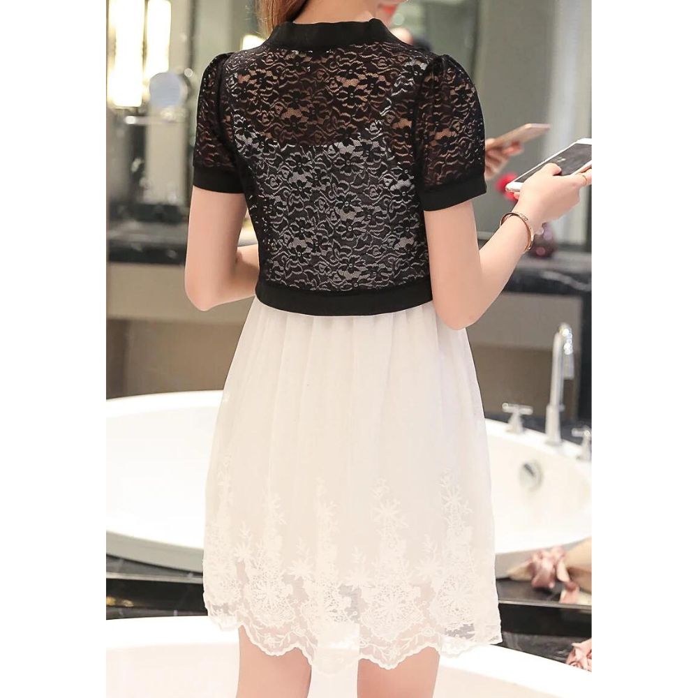 Gilet court élégant noir ou blanc à effet dentelle pour femme