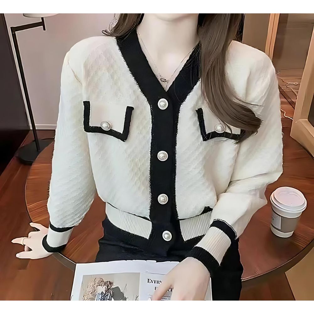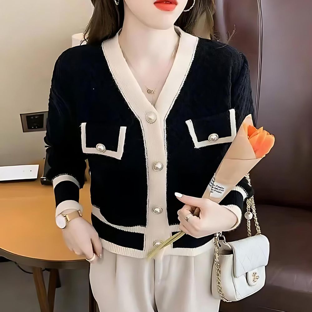 Que vous le portiez avec une jupe crayon pour un look professionnel ou avec un jean pour une allure plus décontractée, ce gilet rehaussera instantanément votre style. Avec ses accents monochromes et son esthétique luxueuse, il est le choix parfait pour les femmes qui apprécient la mode élégante.
