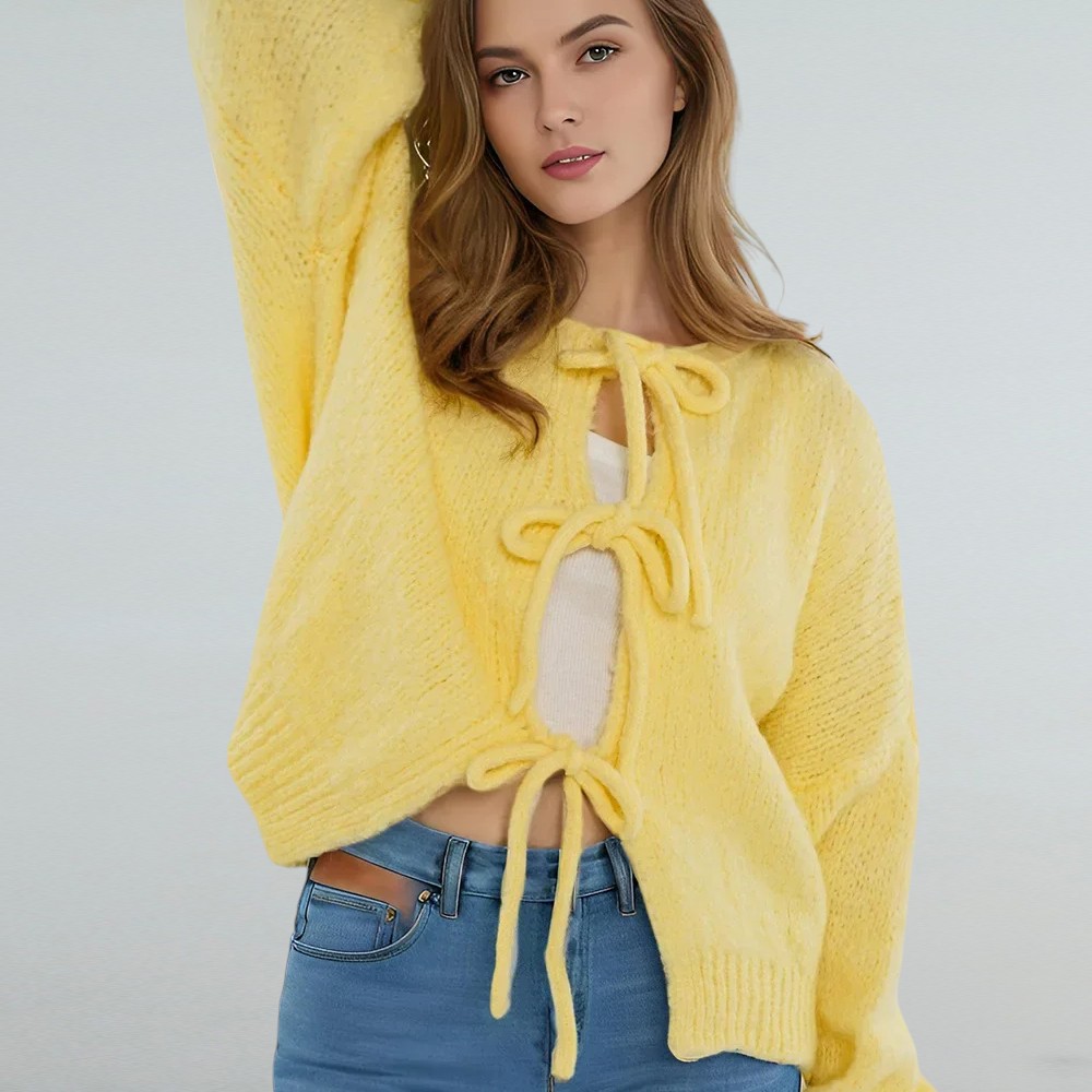 Et si ce gilet était votre nouveau favori ? Avec ses adorables nœuds sur le devant, il évoque la douceur et la féminité, tout en affirmant votre personnalité pétillante et joyeuse.