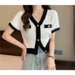 Ce gilet court à manches courtes pour femme, offre une alternative légère et élégante pour les journées plus chaudes. Sa coupe met en valeur la silhouette, tandis que les manches courtes ajoutent une touche de décontraction. Fabriqué dans un tissu léger et confortable, il est idéal pour superposer sur des chemisiers ou des petits tops.