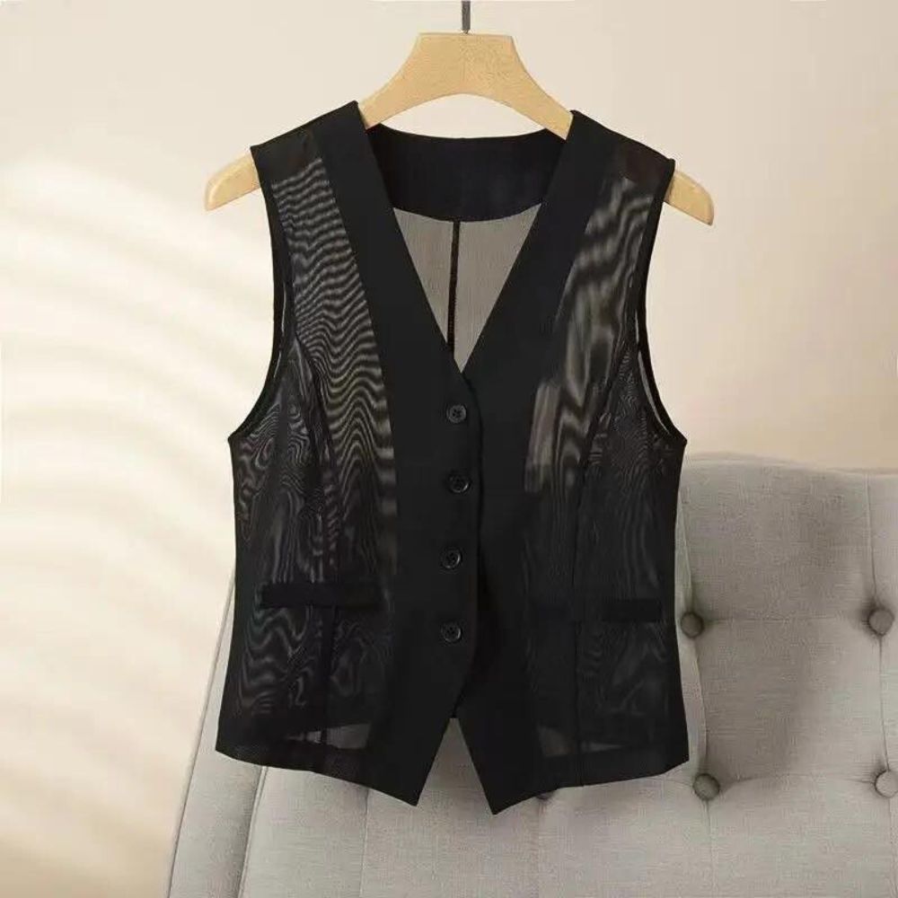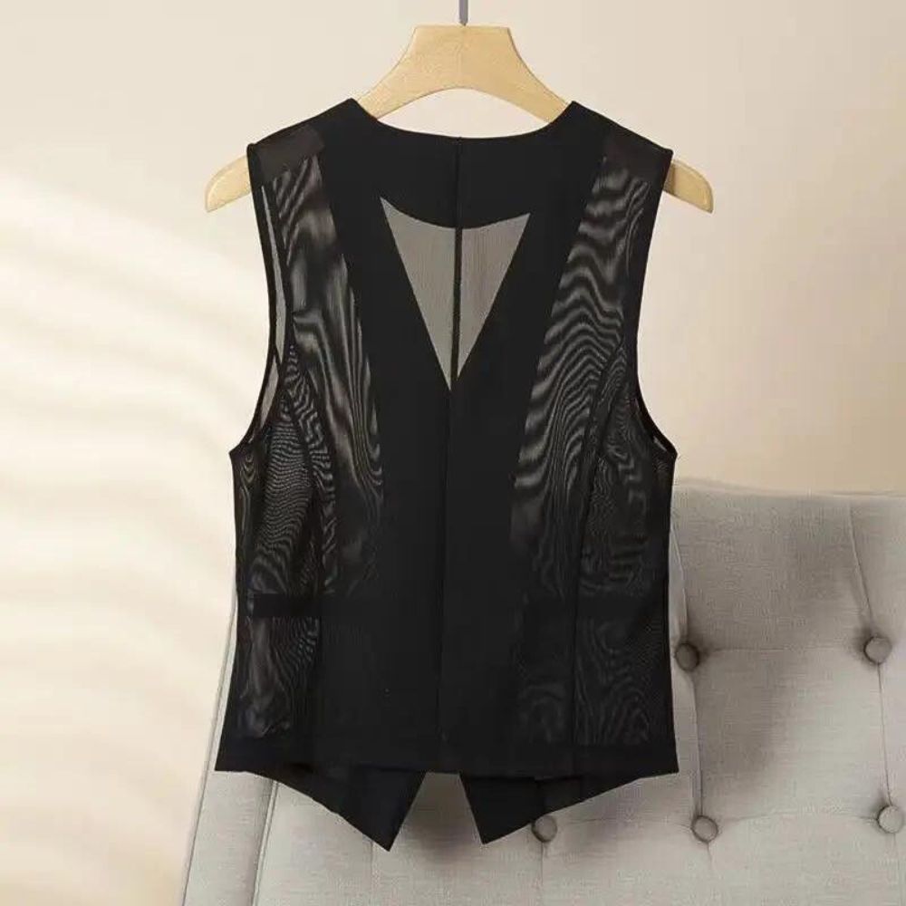 Parfait pour les occasions spéciales ou les soirées chic, ce gilet transparent se marie parfaitement avec une chemise, un haut ou même porté seul pour un style audacieux et tendance.