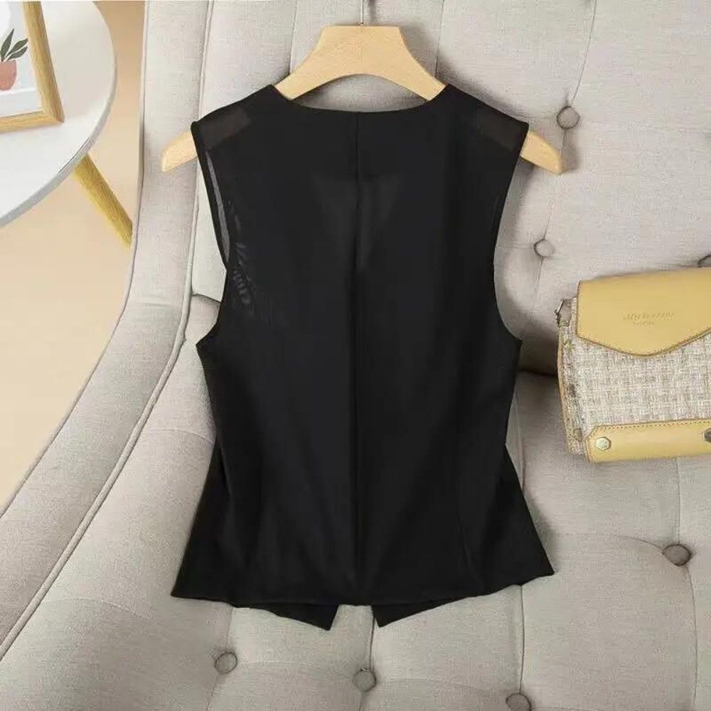 Gilet court sans manches noir transparent pour femme