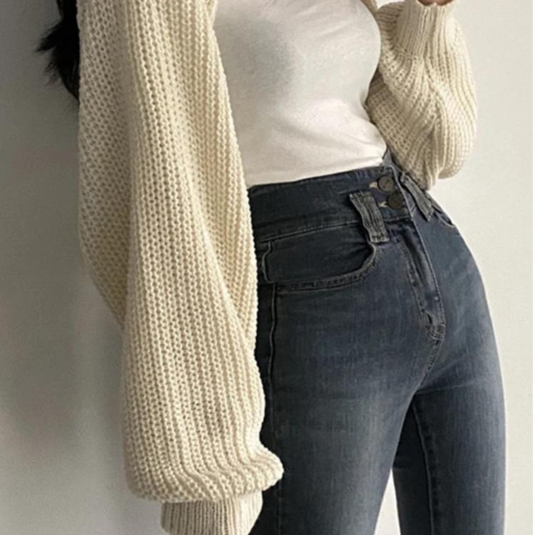 Gilet court tricoté en acrylique pour femme