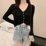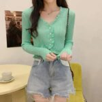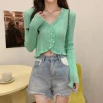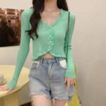 Ce gilet léger et court aux bords arrondis pour femme, est l’essence même du raffinement décontracté. Avec sa coupe fluide, il offre une silhouette flatteuse et féminine. Parfait pour les journées ensoleillées ou les soirées fraîches, sa polyvalence en fait un indispensable de votre dressing. Associez-le à un jean ou à une jupe pour un look printanier.