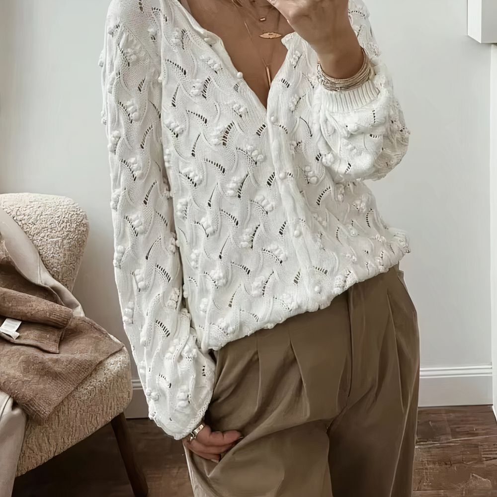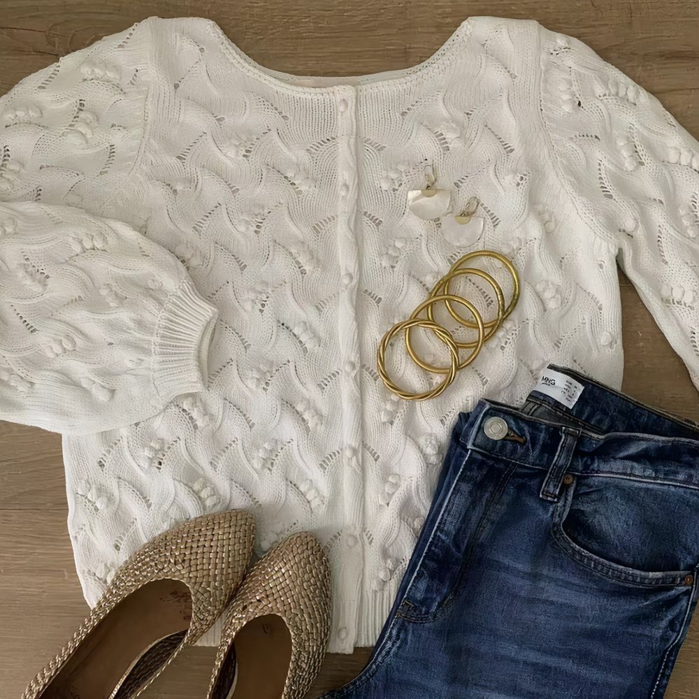Craquez pour le gilet léger printemps été en coton motif ajouré ! Idéal pour apporter douceur et fraîcheur à vos tenues, il vous accompagnera avec style à chaque instant. Son design délicat et sa coupe flatteuse font de lui un indispensable de votre garde-robe estivale.