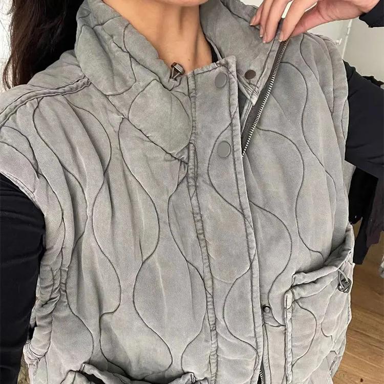 Gilet matelassé sans manches en coton à poches pour femme