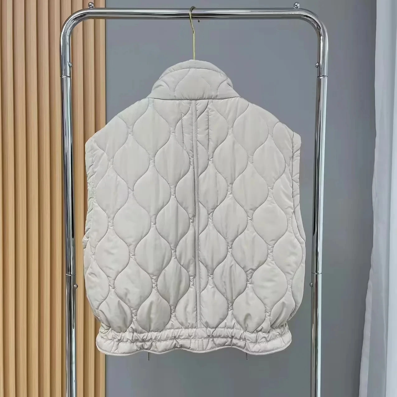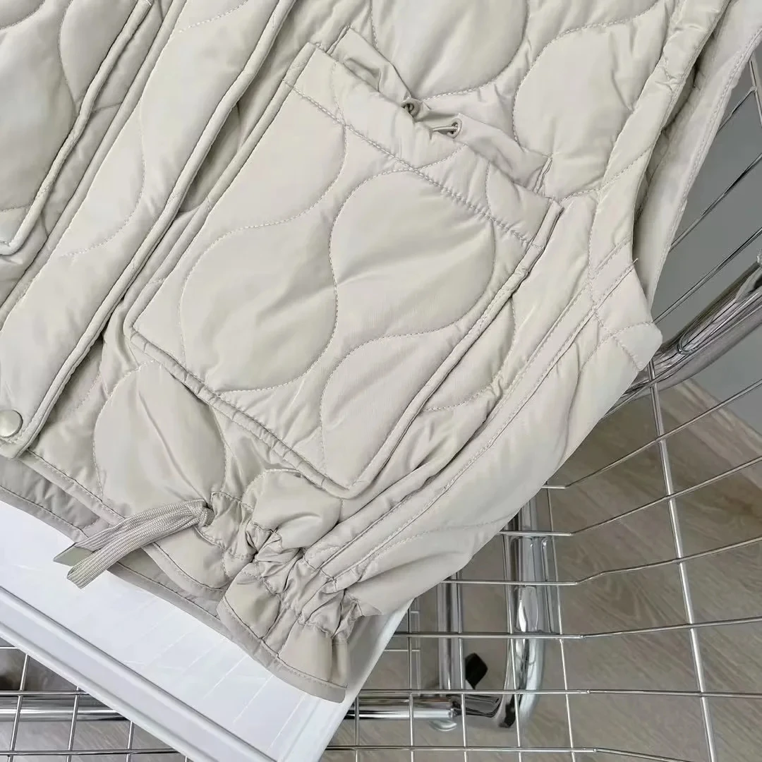Notre gilet matelassé sans manches en coton à poches pour femme est un vêtement branché et tendance qui ajoute une touche de style à votre garde-robe. Fabriqué à partir de coton de haute qualité, notre gilet offre un confort exceptionnel tout en étant léger et respirant. Le rembourrage soigneusement réalisé crée un motif attrayant qui ajoute du volume et de la texture au gilet.
