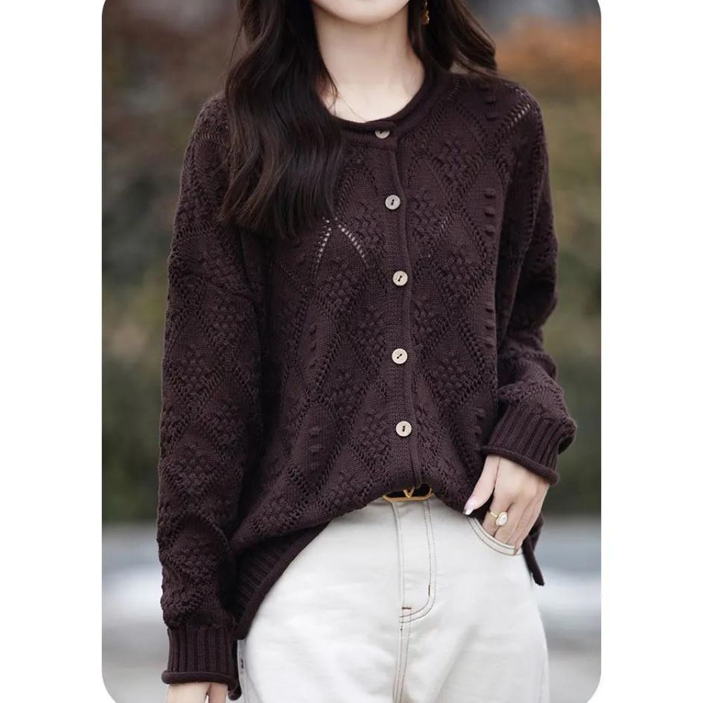 Idéal pour celles qui apprécient les détails subtils et l'artisanat de qualité, ce gilet transforme un look quotidien en une déclaration de mode sophistiquée, parfaite pour les réunions professionnelles ou les sorties en ville.