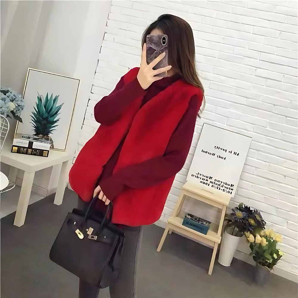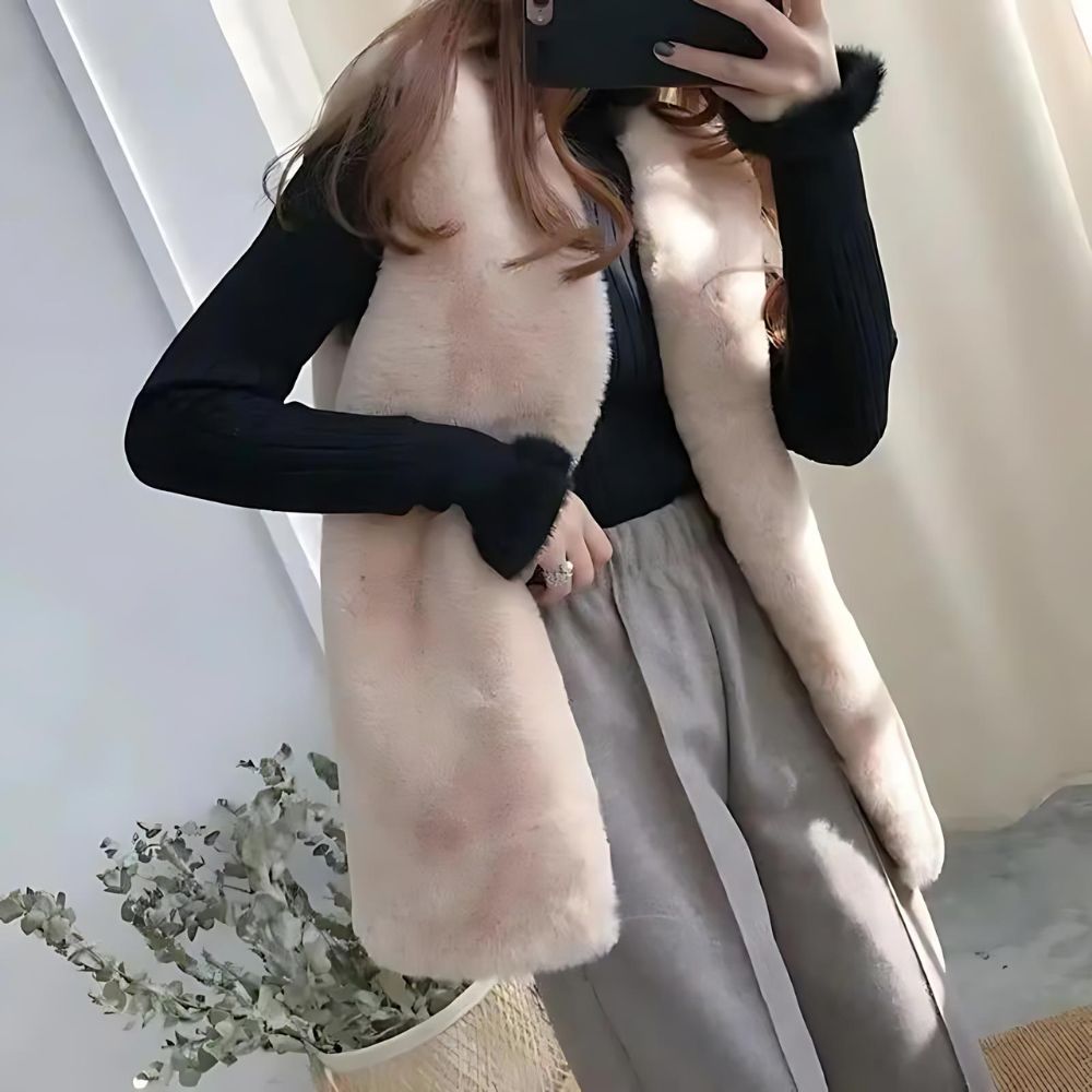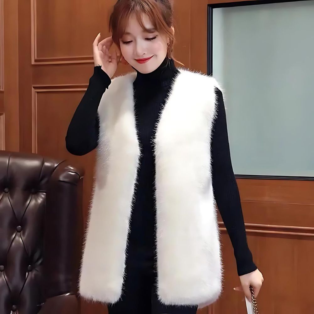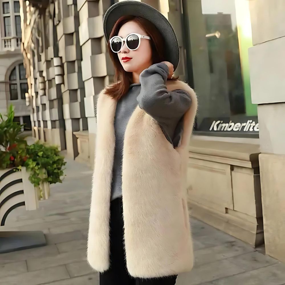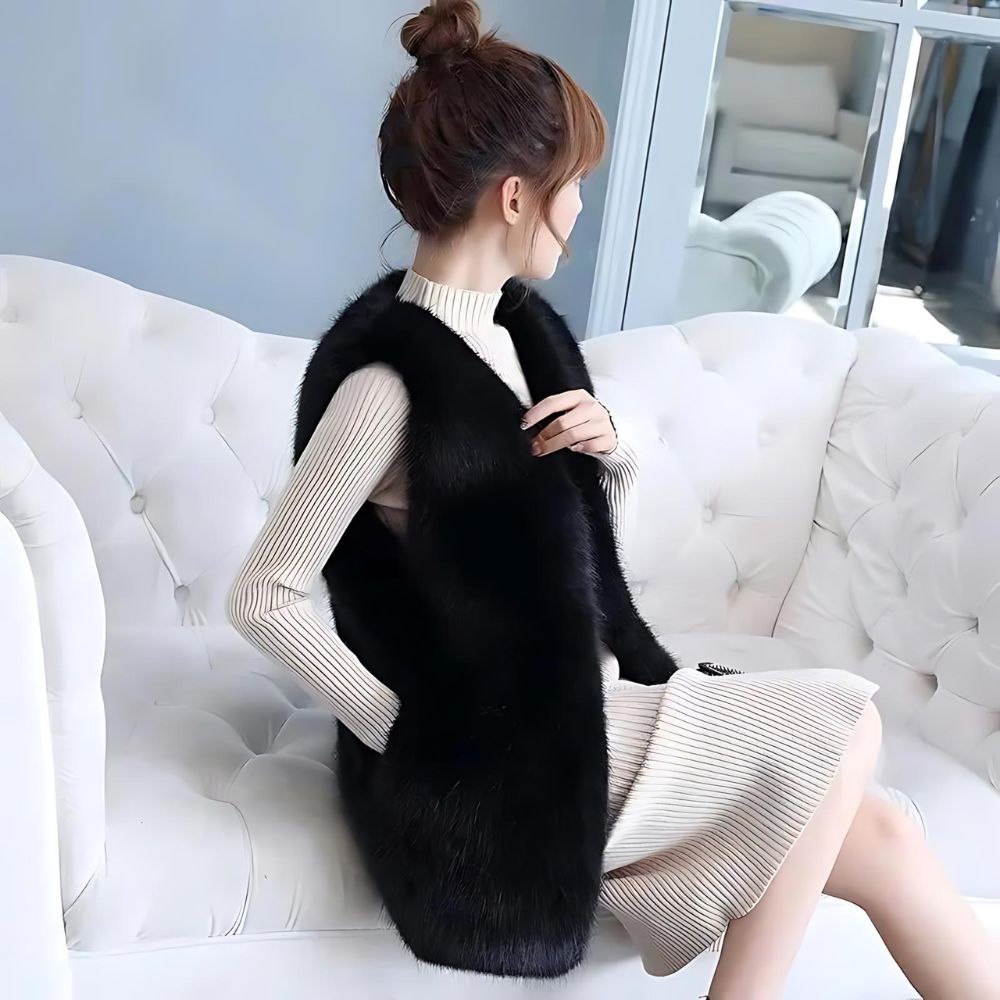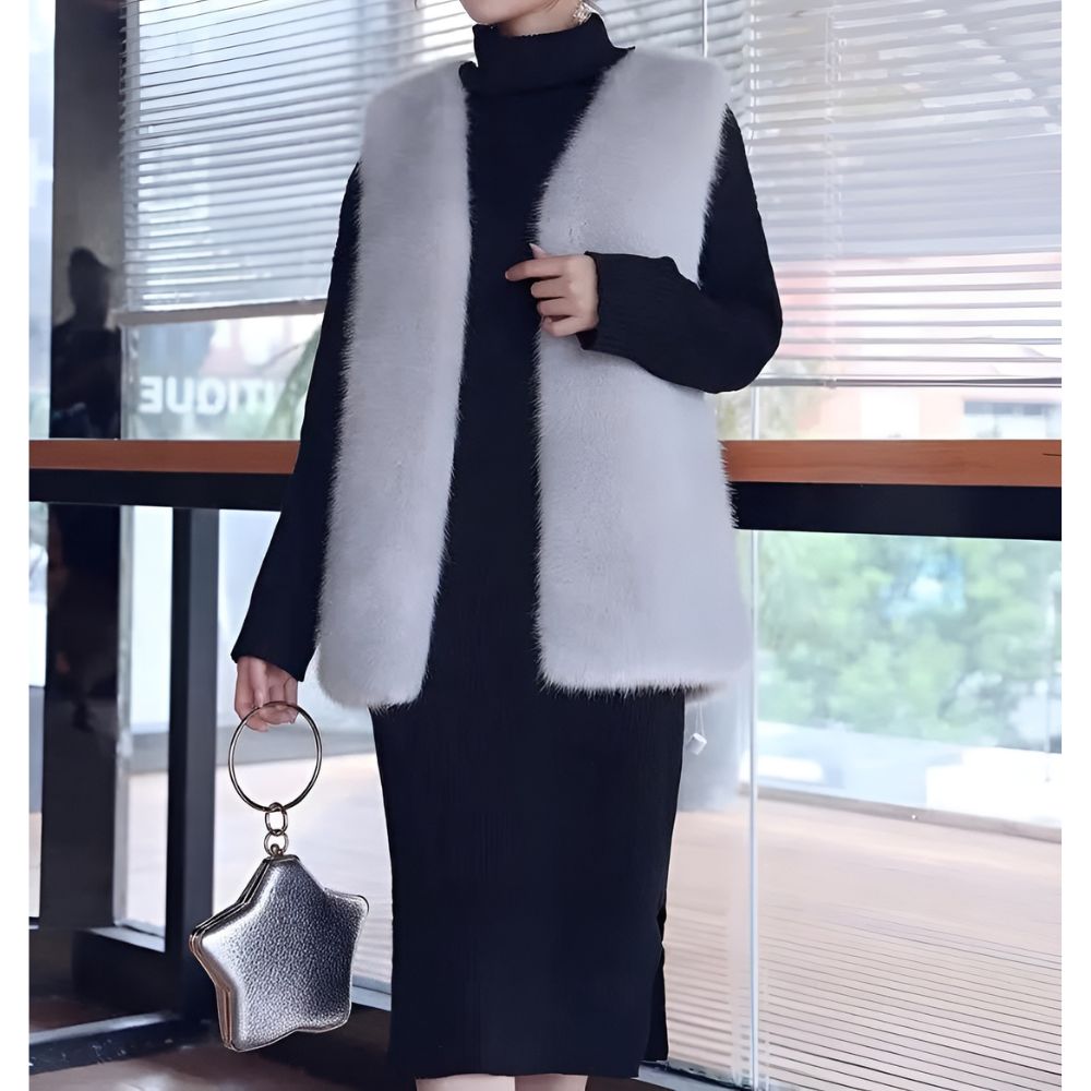 Gilet mi-long sans manches en fausse fourrure pour femme