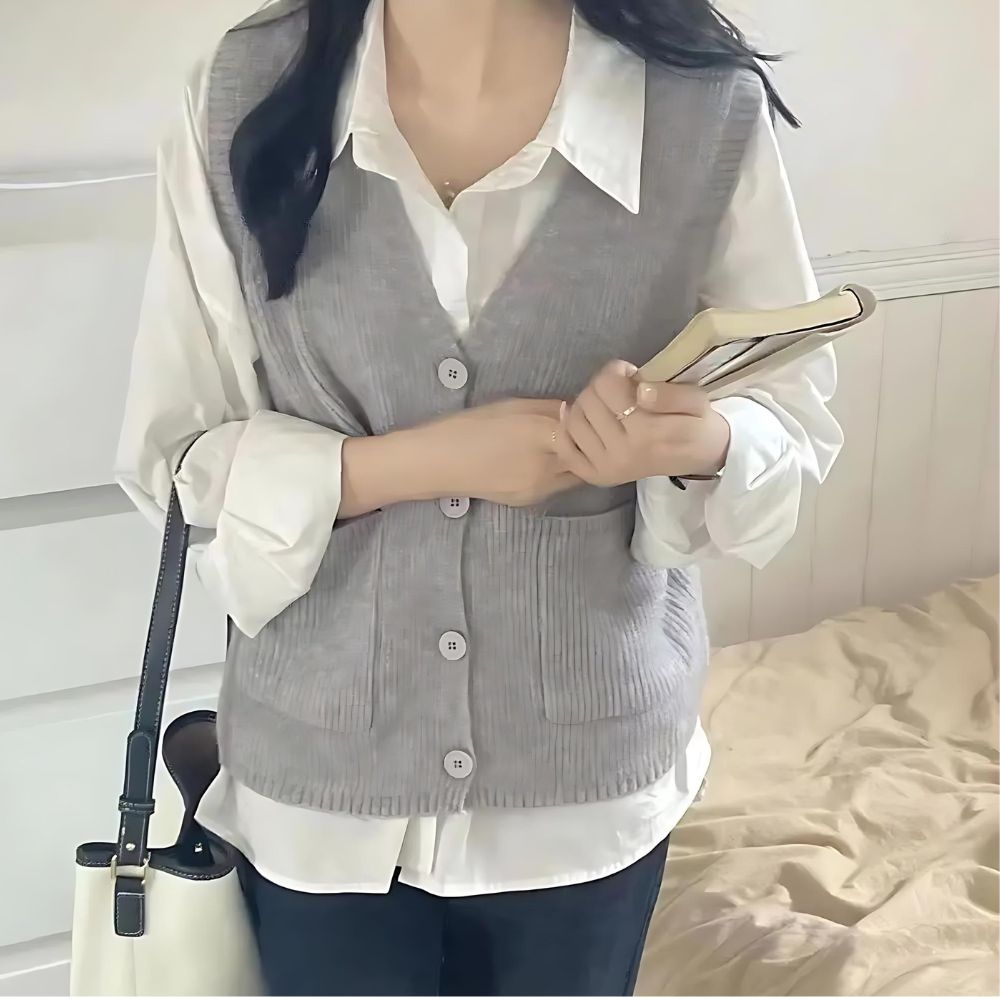 Disponible dans une gamme de couleurs neutres telles que le gris, le blanc, le noir et le marron, ce gilet sans manches vintage offre de multiples possibilités de coordination avec votre garde-robe existante.