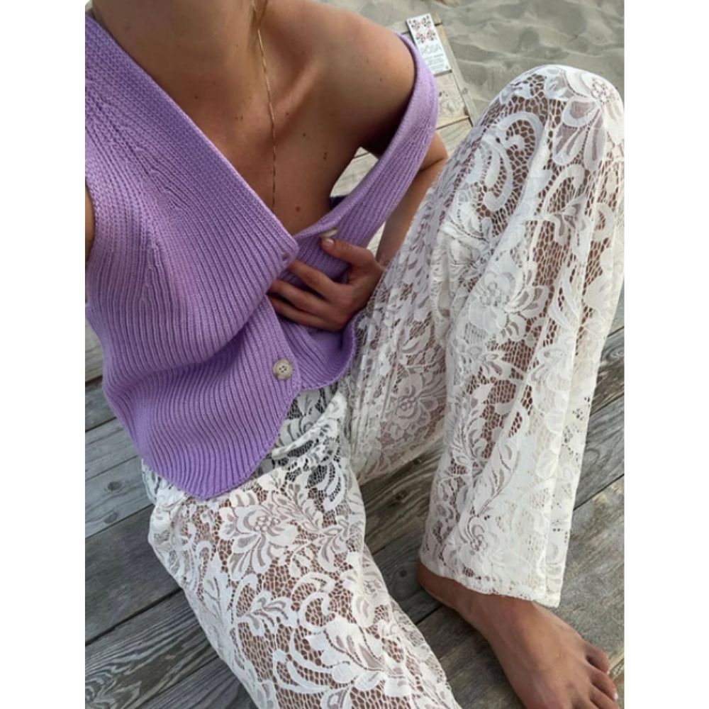 Revitalisez votre garde-robe de printemps et d'été avec notre gilet en maille, disponible dans des teintes vibrantes telles que le rose, le jaune, le violet et le bleu. Ces couleurs joyeuses sont parfaites pour illuminer votre tenue et vous démarquer avec style.