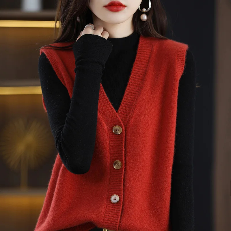 Ce gilet en laine sans manche pour femme est un vêtement polyvalent et élégant qui allie confort et style. Sa conception sans manches le rend idéal pour être porté seul par-dessus un chemisier ou un t-shirt léger, ou superposé sous une veste ou un manteau plus épais lorsque les températures baissent.