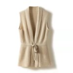 Son col en V flatteur met en valeur le décolleté féminin, ajoutant une dimension supplémentaire à l'esthétique globale du gilet. Il peut être porté ouvert pour un look décontracté et décontracté, ou fermé avec un joli nœud pour une allure plus formelle et sophistiquée. La coupe sans manches permet une grande liberté de mouvement, ce qui en fait un choix idéal pour les activités quotidiennes ou les occasions spéciales.