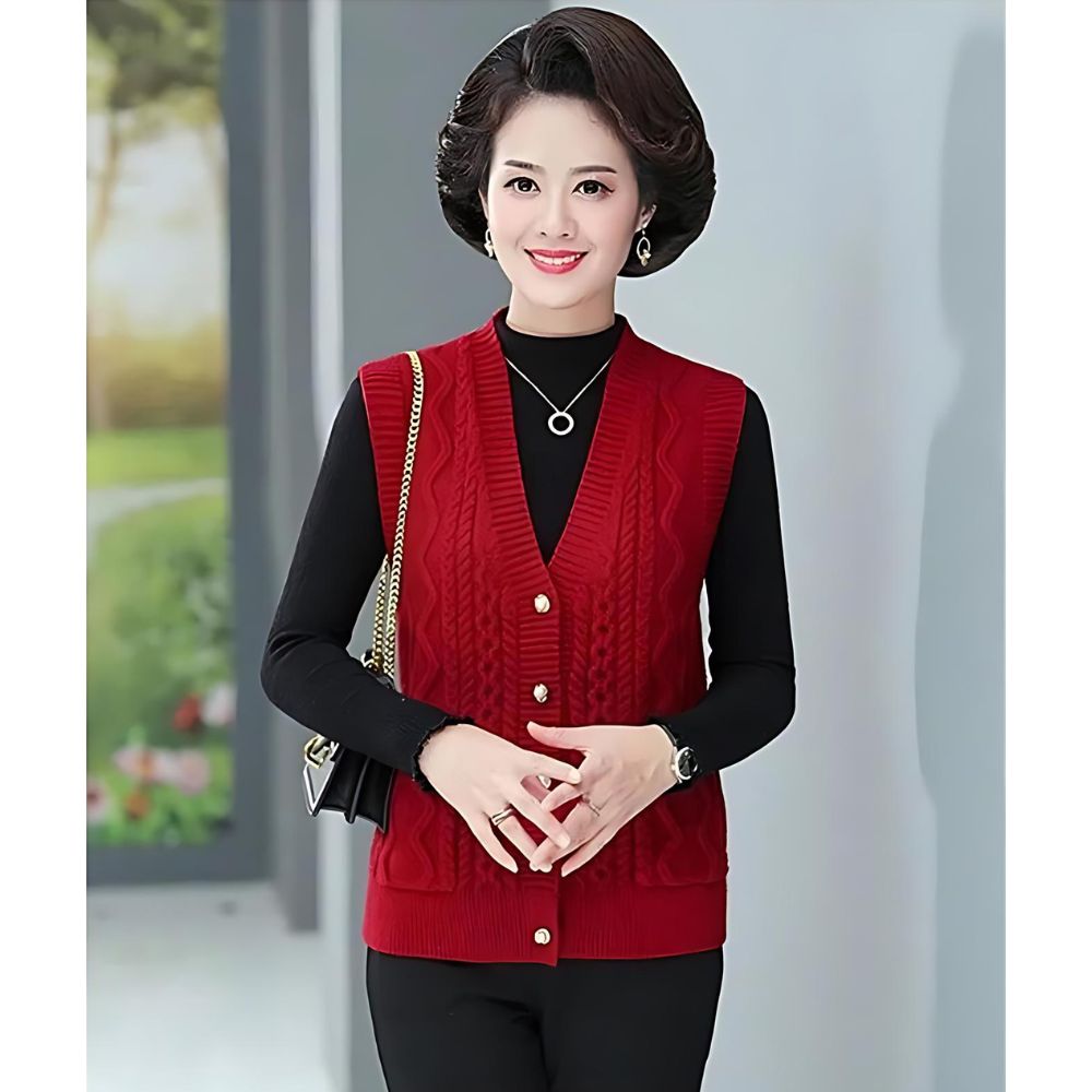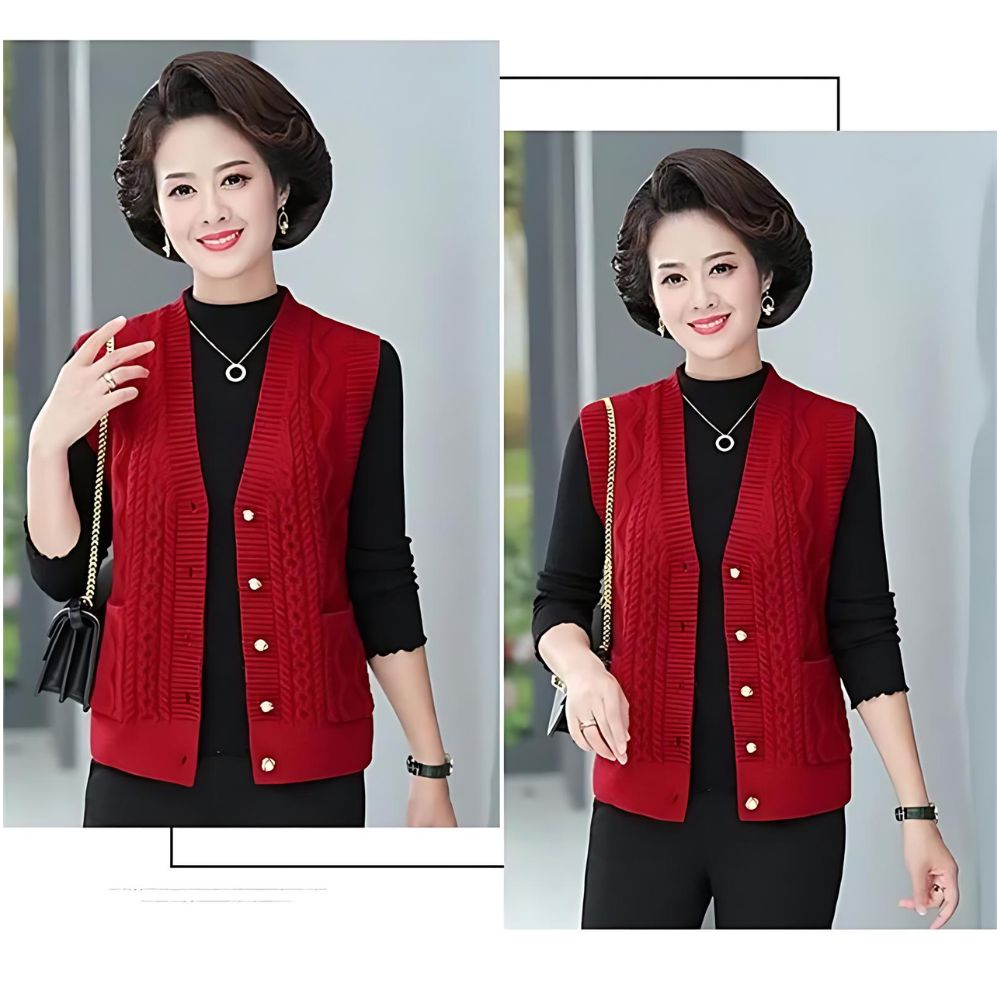Que vous optiez pour le rouge audacieux pour un look dynamique, ou le bleu apaisant pour une touche de calme, ce gilet vous assure de rester élégante et à la mode en toutes circonstances.