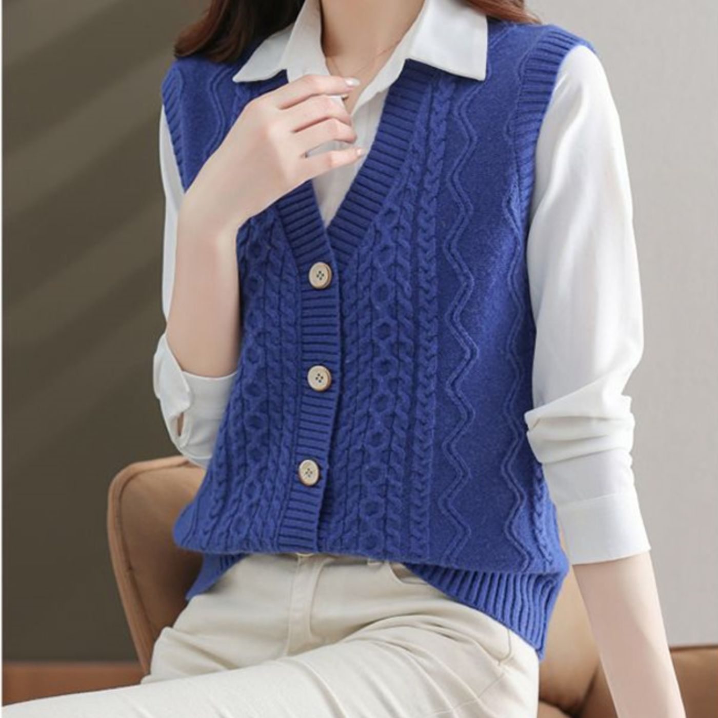 Plongez dans l'élégance intemporelle avec notre gilet sans manches style cardigan, l'accessoire essentiel qui redéfinit le style classique. Disponible dans une palette de couleurs raffinées, il offre une polyvalence idéale pour toutes les occasions.