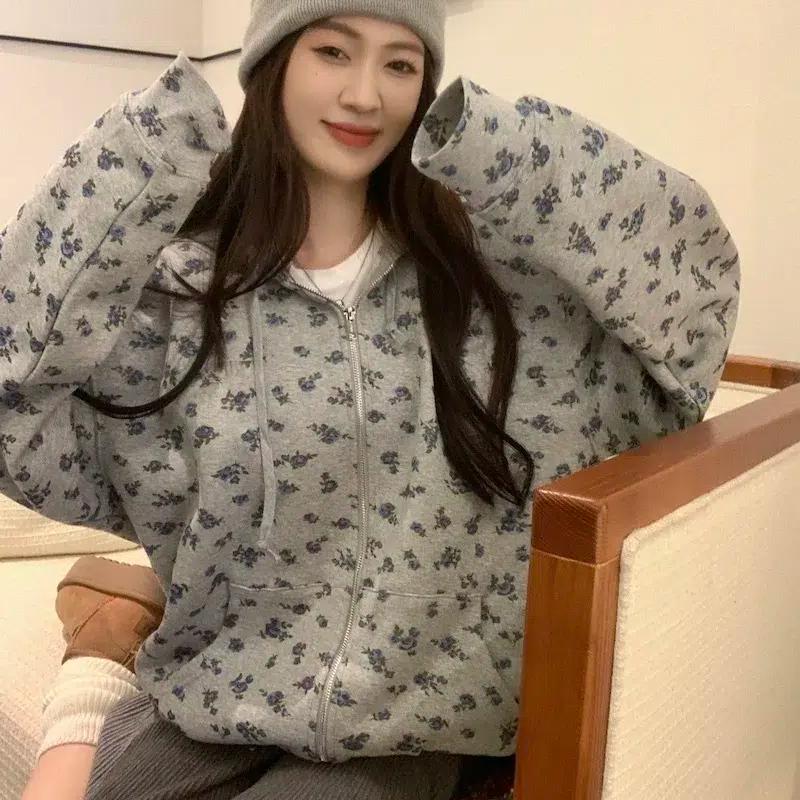 Ce gilet sweat à capuche imprimé floral pour femme possède un design large pour le corps et long pour les manches : il se porte à la garçonne un peu oversizé pour un look tendance et streetwear. Il sera peut-être plus porté par les jeunes filles qui se reconnaîtront dans ce look décontracté. Les grandes poches sur le devant permettront d'y loger téléphone, clefs ou tout autre objet précieux.