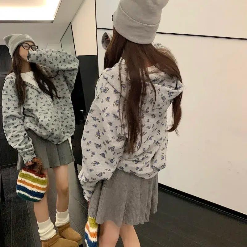 Ce gilet sweat à capuche imprimé floral pour femme est fabriqué dans un tissu à l'imprimé floral discret et mignon : uniquement proposé en gris, ce gilet peut se porter facilement avec grand nombre de vos vêtements, jeans, joggings, jupes et tee-shirts ou pulls légers et dont la couleur se mariera facilement avec celle du gilet. Il vous accompagnera toute la journée et partout.