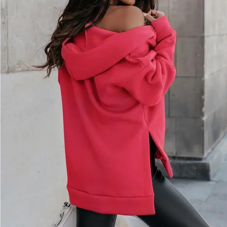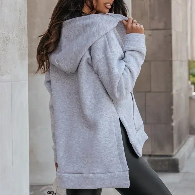 Ce gilet sweat zippé à fentes latérales pour femme est un gilet original et sexy à grande capuche et à deux longueurs différentes qui se décline en quatre couleurs, deux assez sobres et les deux autres vives et gaies. Il est également confortable et offre la possibilité de changer de look à volonté avec sa capuche et son zip.