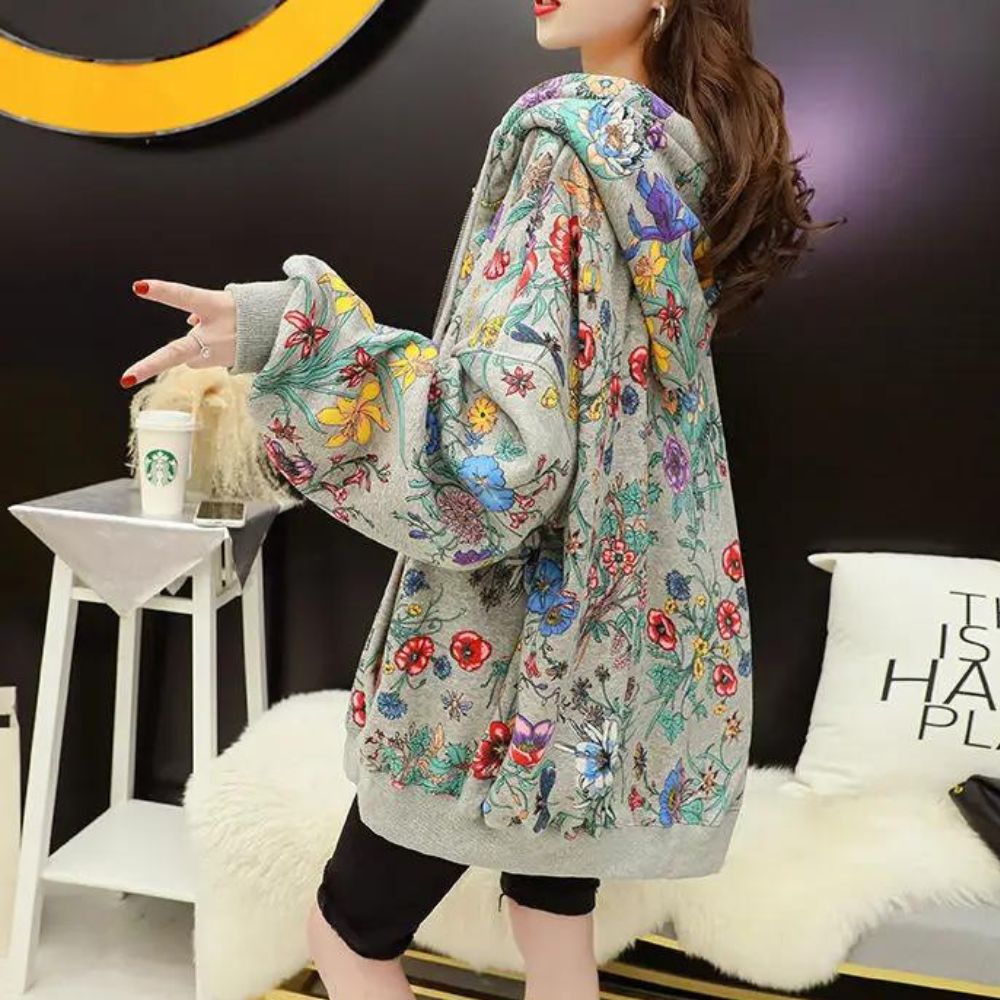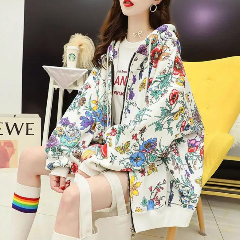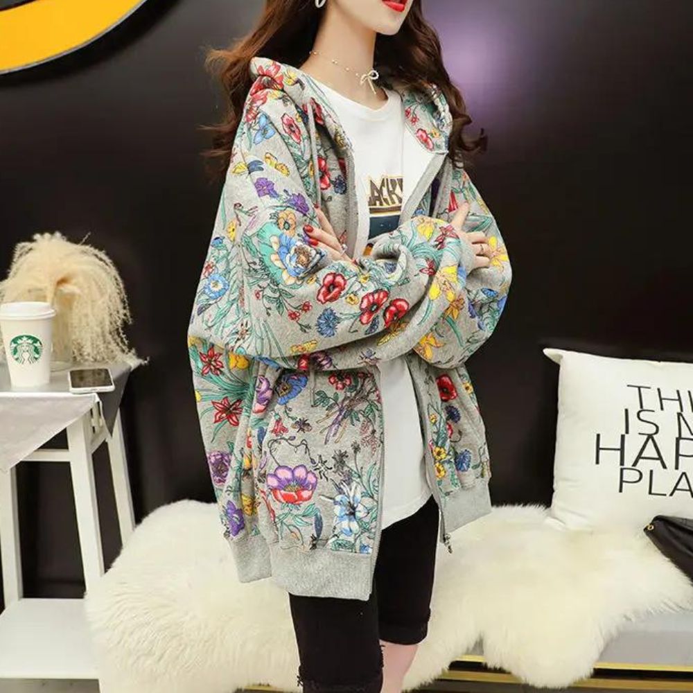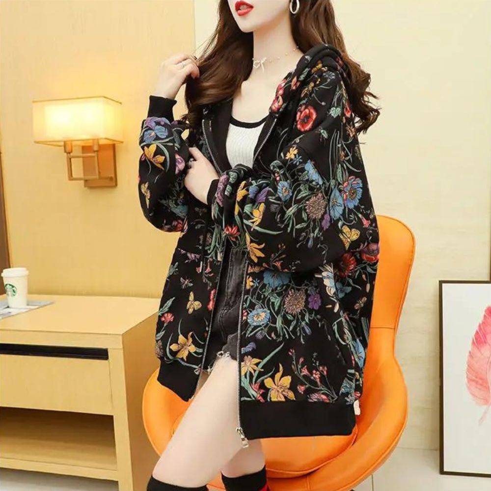 Laissez-vous enchanter par notre gilet zippé ample à motifs floraux pour femme une pièce qui évoque la beauté de la nature. Sa coupe généreuse offre un confort absolu, tandis que ses motifs floraux apportent une touche de fraîcheur et de féminité à votre tenue. Ce gilet ajoute une note de charme printanier à votre look.