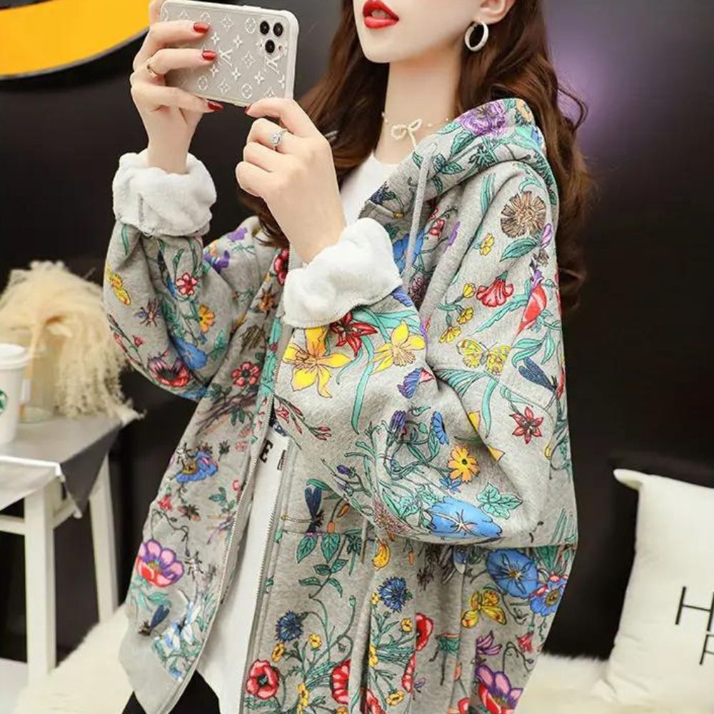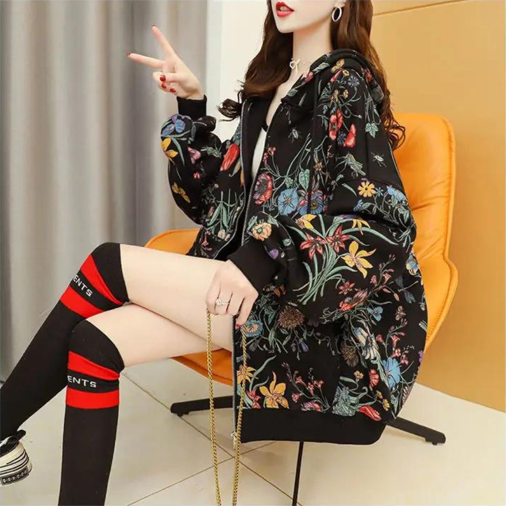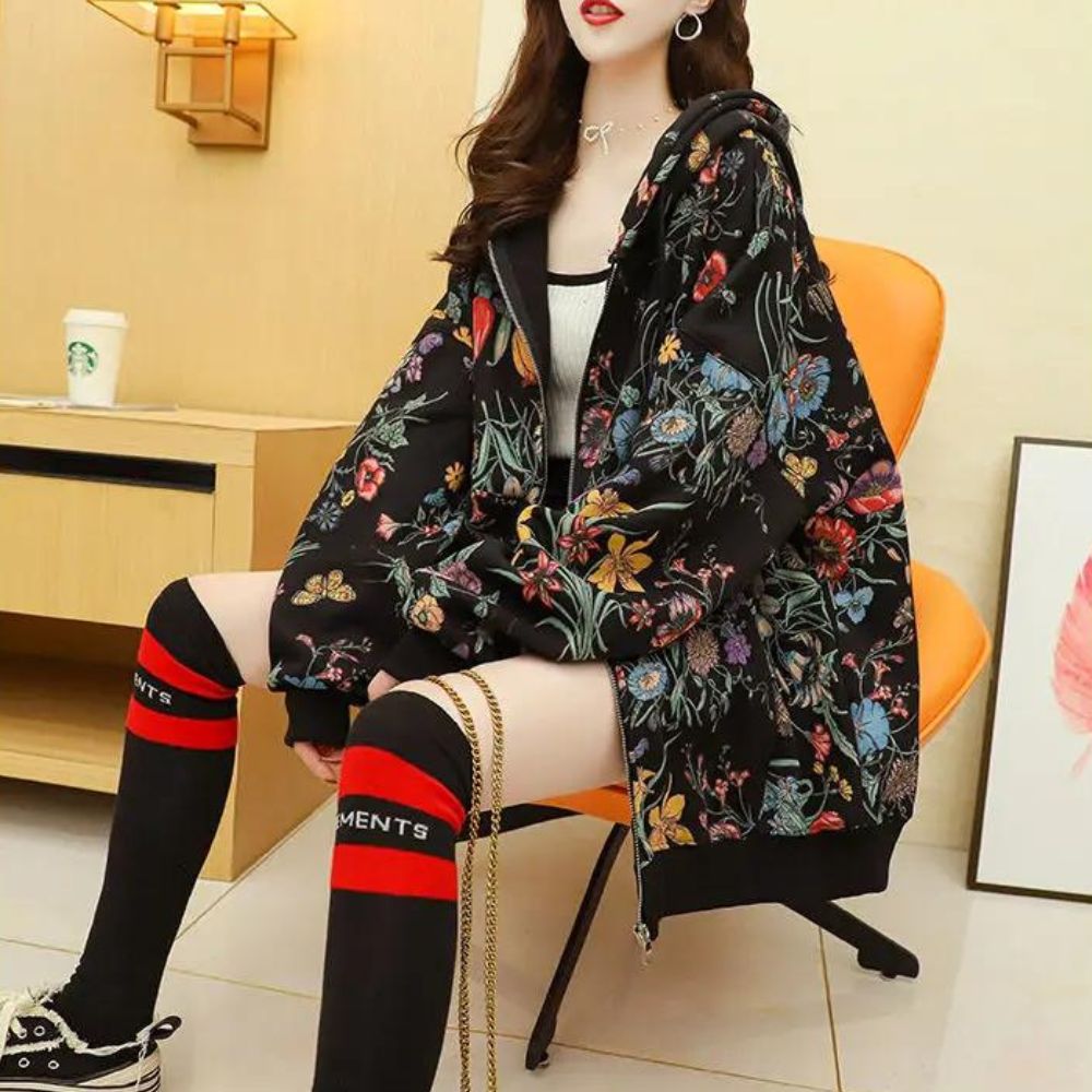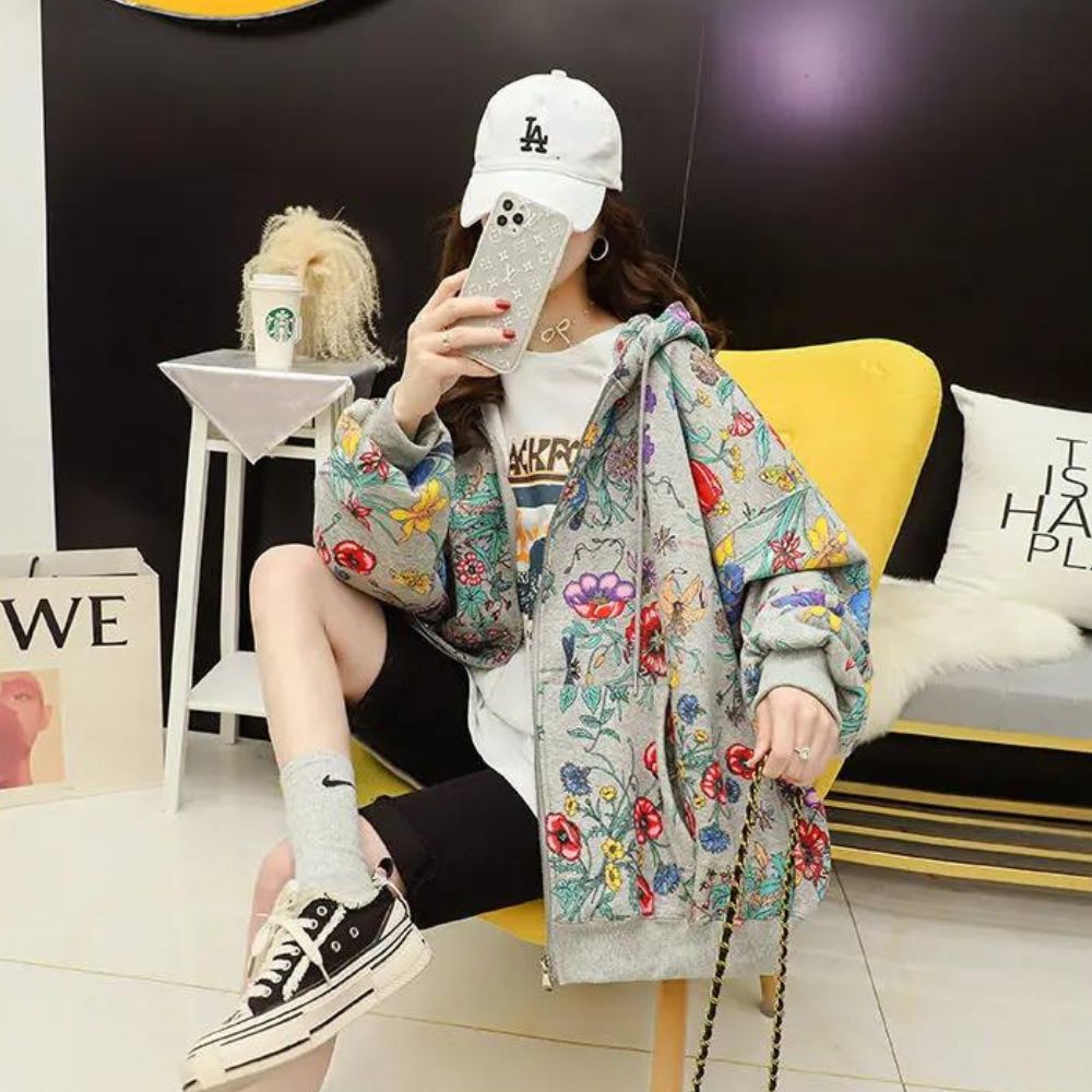 Laissez-vous enchanter par notre gilet zippé ample à motifs floraux pour femme une pièce qui évoque la beauté de la nature. Sa coupe généreuse offre un confort absolu, tandis que ses motifs floraux apportent une touche de fraîcheur et de féminité à votre tenue. Ce gilet ajoute une note de charme printanier à votre look.