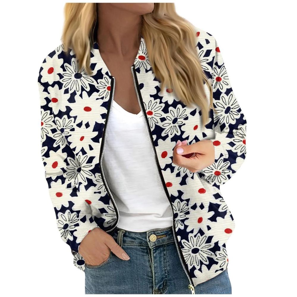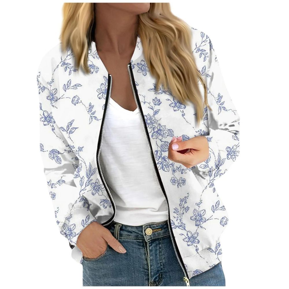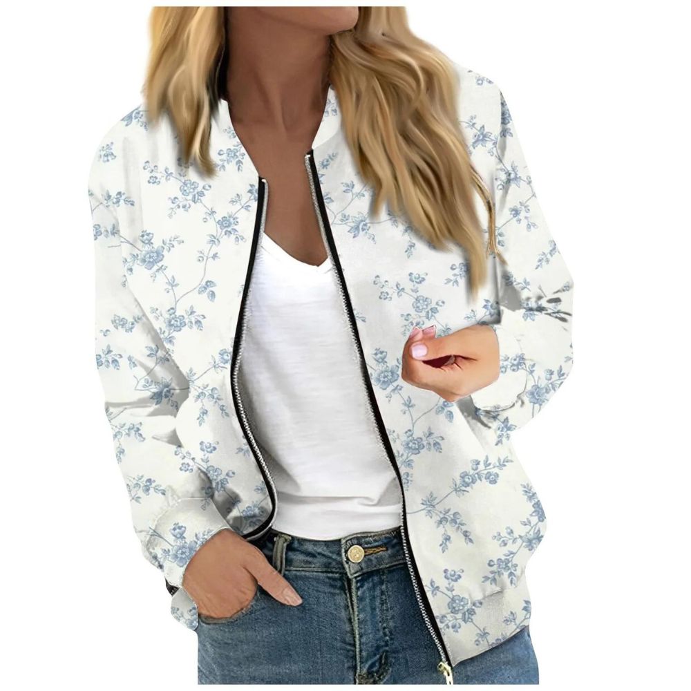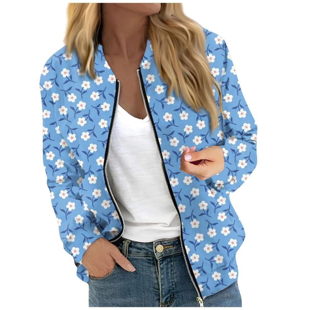 Gilet zippé fin à imprimés floraux dans les tons bleus pour femme