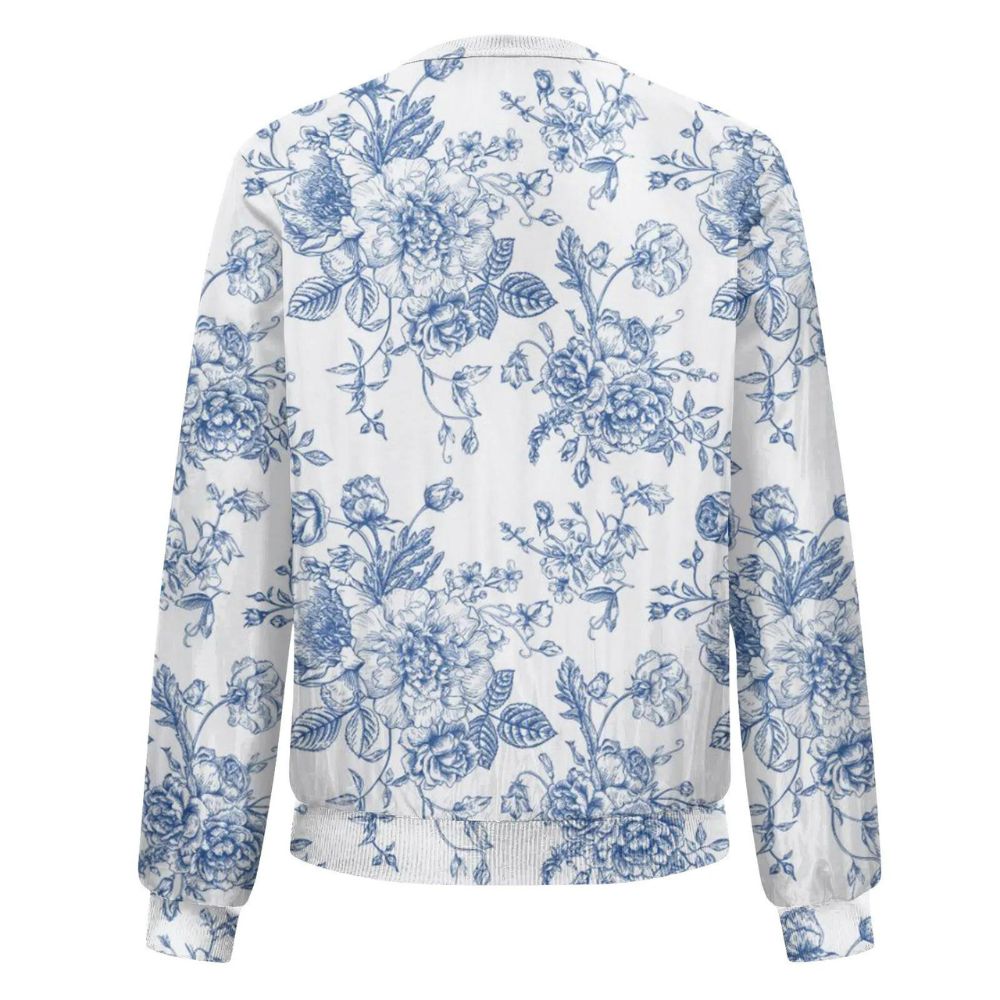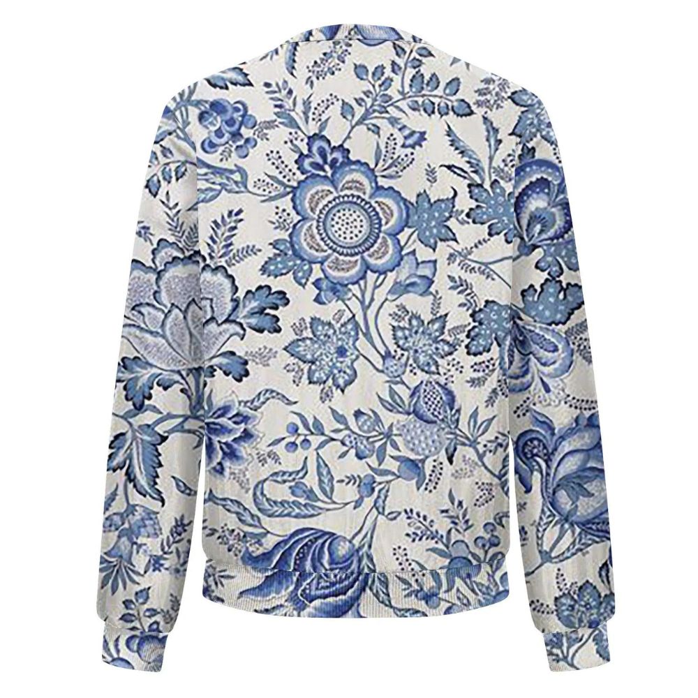 Parfait pour un brunch, une journée de shopping ou une soirée décontractée, ce gilet ajoute une dimension élégante et printanière à votre look. Son motif floral délicat, dans des teintes apaisantes de bleu, vous enveloppe d'une aura de douceur et de style.