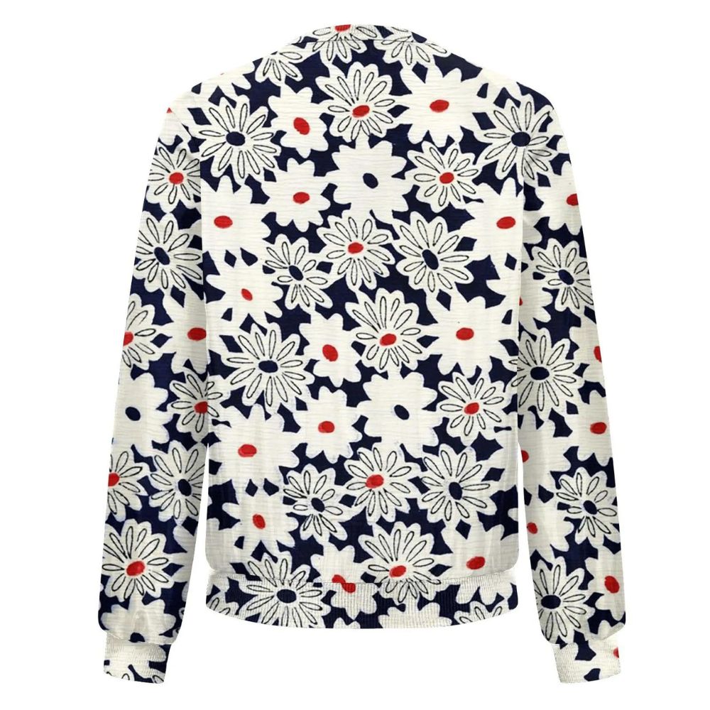 Apportez une note de fraîcheur à votre tenue avec notre gilet à col rond, court et zippé, orné d'imprimés floraux délicats. Ce gilet combine habilement un style casual chic avec une essence féminine, faisant de lui une pièce versatile pour toutes occasions.