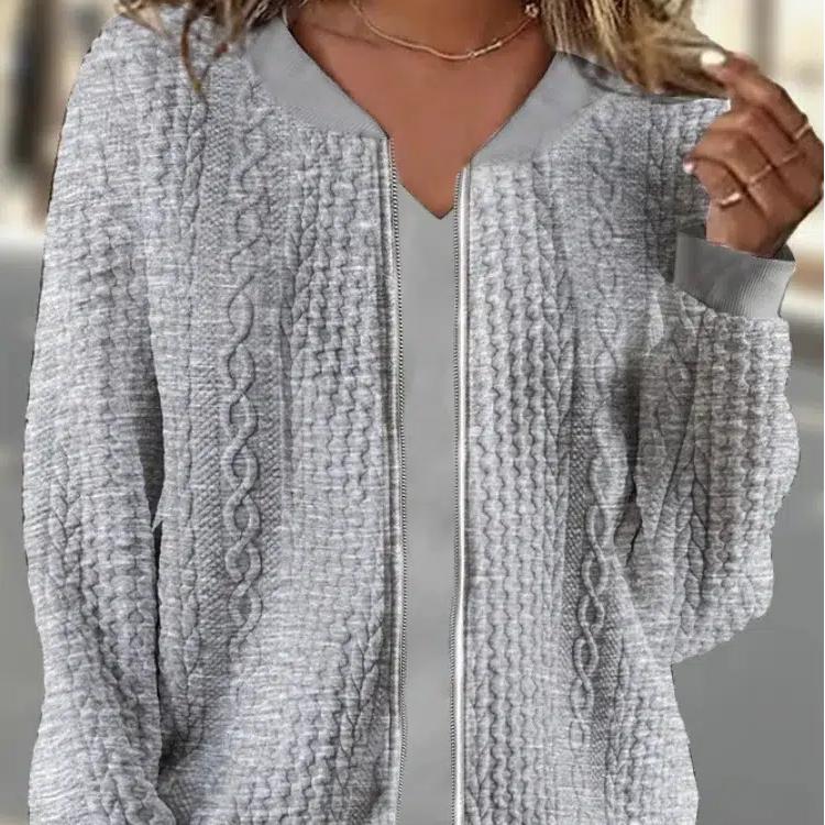 Gilet zippé à manches longues style tricot pour femme