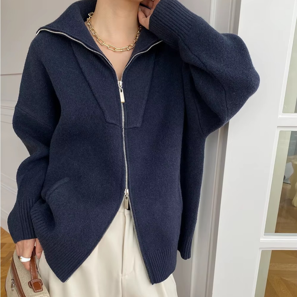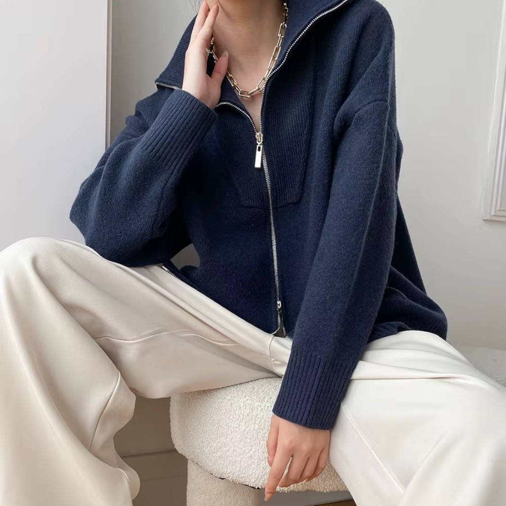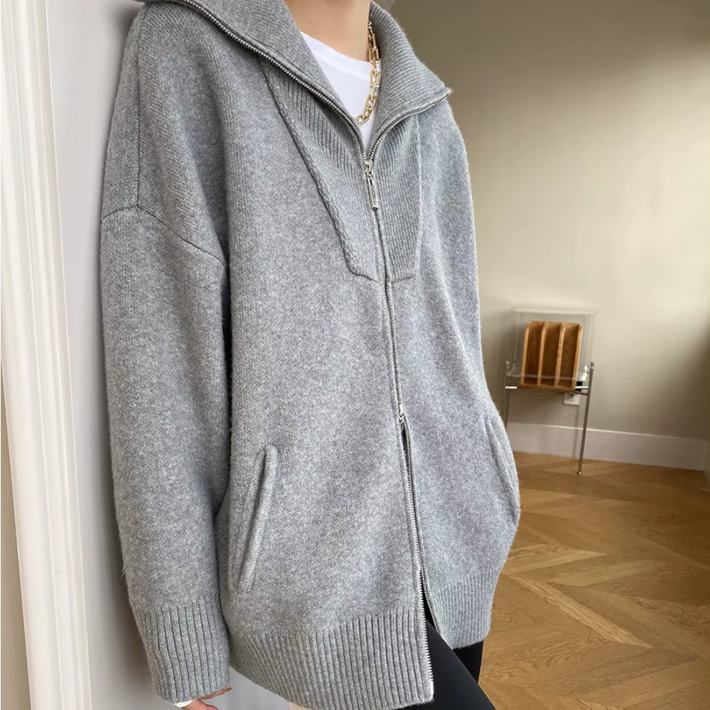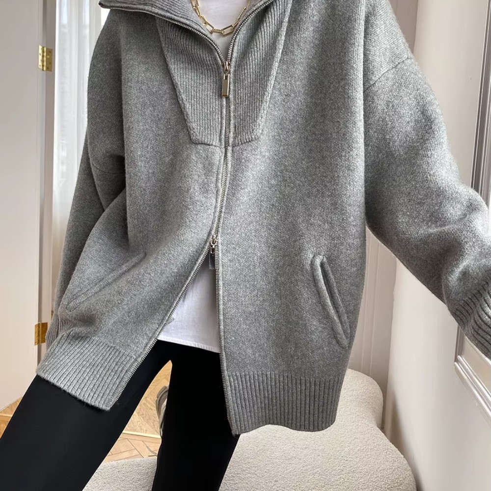 Sa coupe oversize tombe naturellement, avec une nonchalance maîtrisée. Le zip discret vous permet de jouer avec les volumes, et ses manches généreuses créent un effet cocon irrésistible. Vous n’avez rien à prouver, juste à être bien.