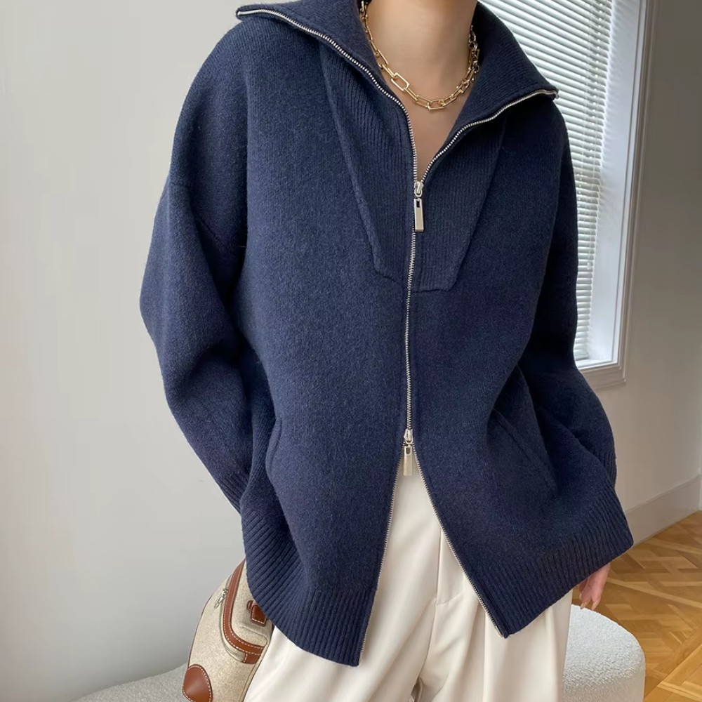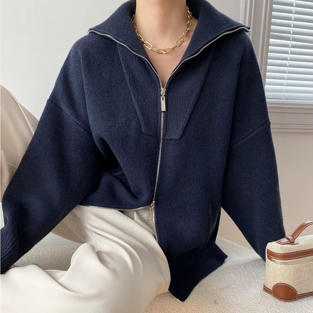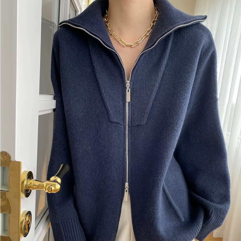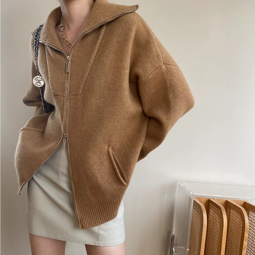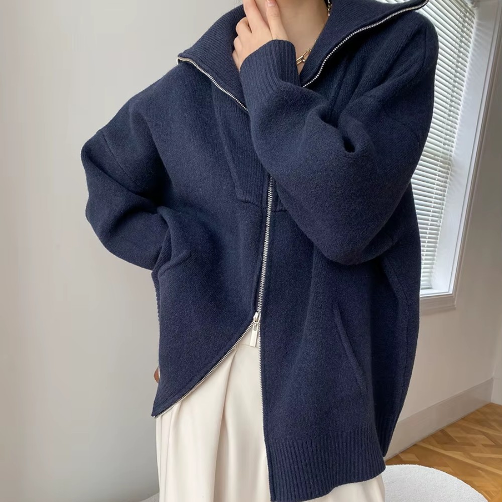 Sa coupe oversize tombe naturellement, avec une nonchalance maîtrisée. Le zip discret vous permet de jouer avec les volumes, et ses manches généreuses créent un effet cocon irrésistible. Vous n’avez rien à prouver, juste à être bien.