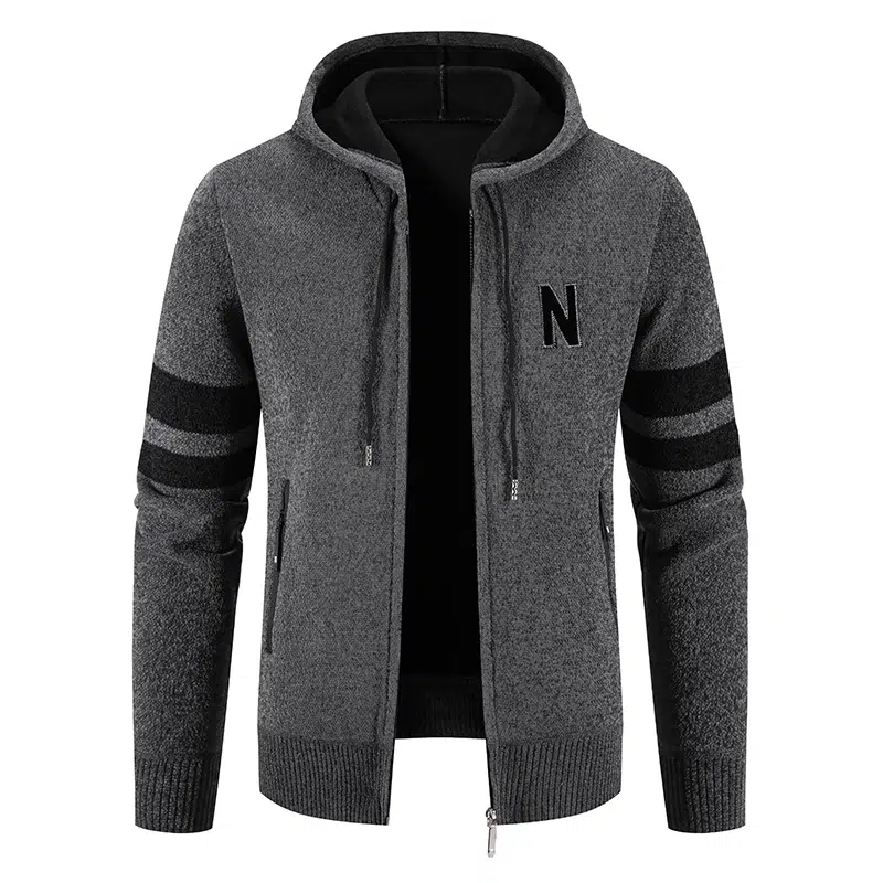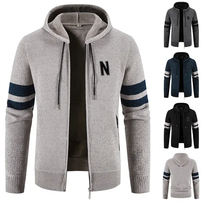 Gilet à capuche zippé en tricot pour homme