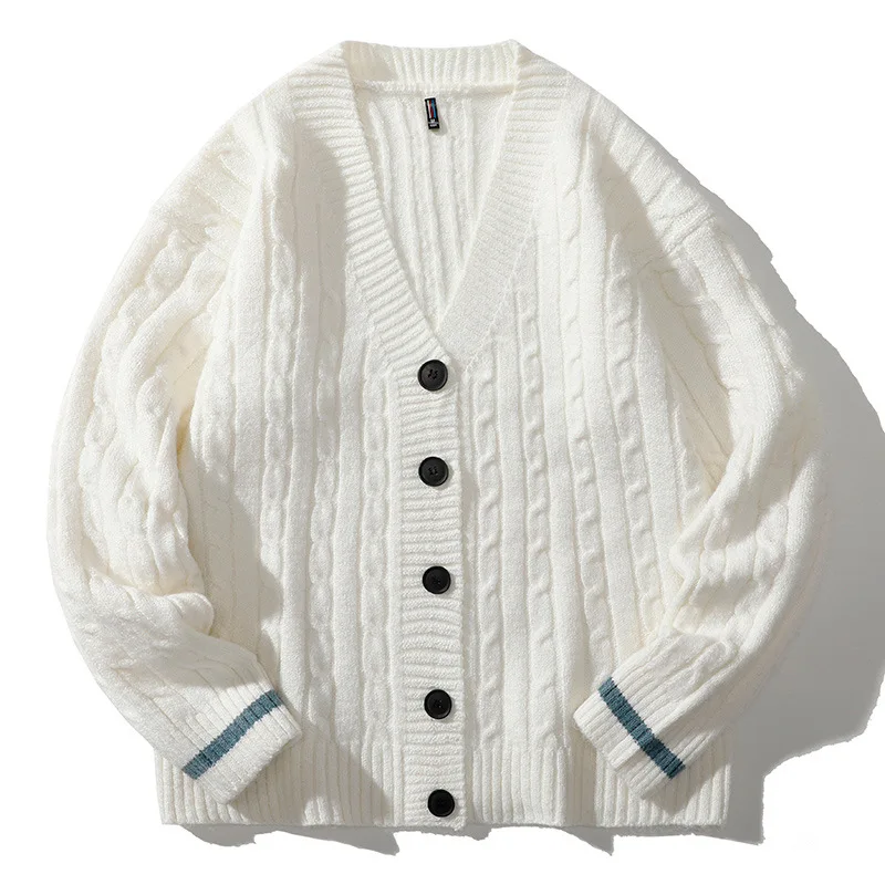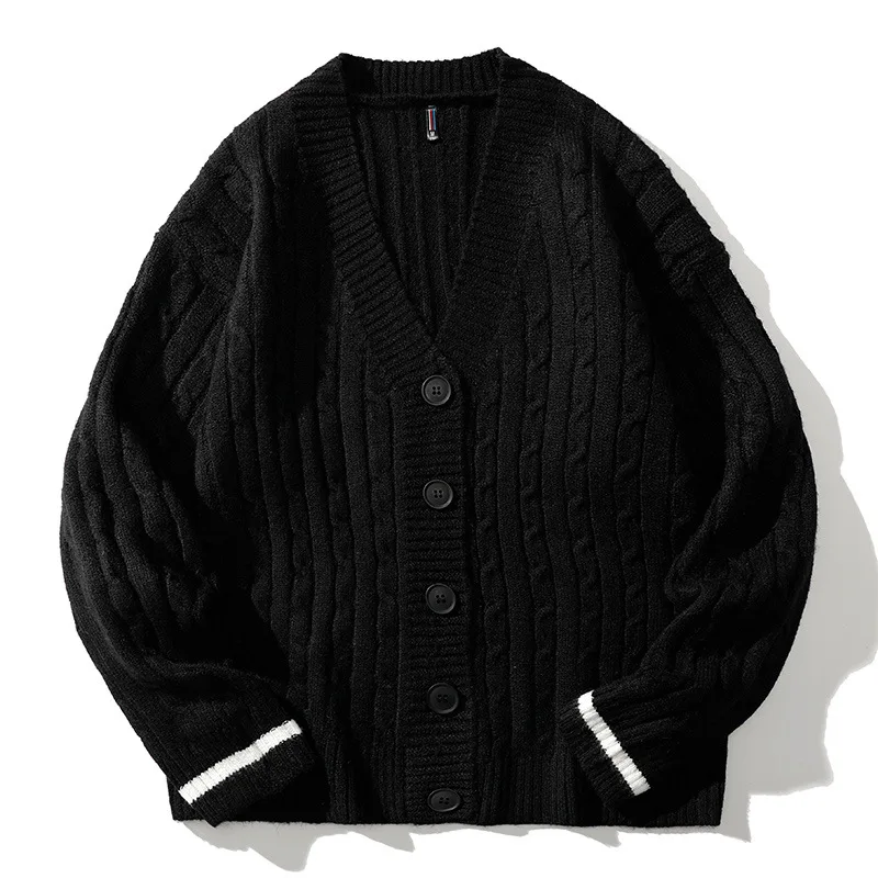 Notre gilet chaud type cardigan de style vintage pour homme est une pièce qui vous donnera un look rétro et soigné tout en vous protégeant du froid. Sa maille torsadé et sa coupe ample avec son détail au bas des manches lui donne un look sophistiqué et preppy qui s’accordera avec tout les styles.
