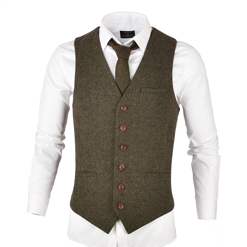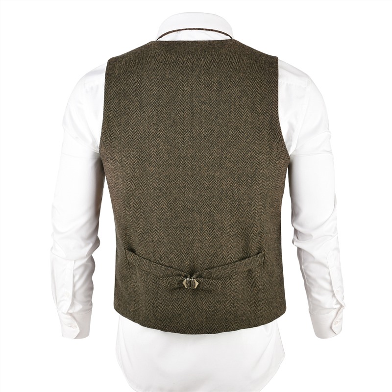 Choisissez notre gilet de costume motif chevron à boutonnage pour homme ! Il symbolise l’élégance intemporelle avec son design à boutonnage simple. Il apporte une élégance vintage à toute tenue formelle et accompagne naturellement un pantalon habillé pour une soirée chic ou un jean pour une ambiance décontractée.
