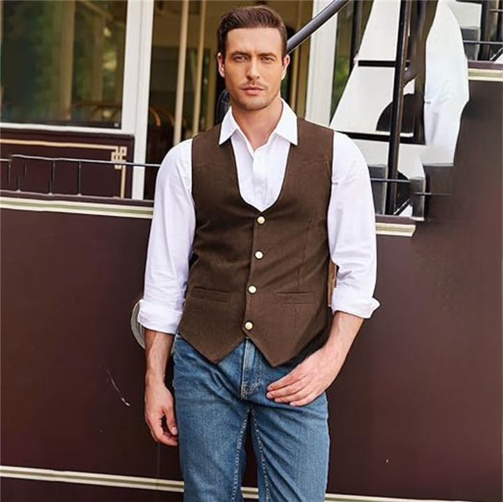 Explorez la polyvalence sans limite avec notre gilet de costume pour homme. Que vous soyez au bureau ou en week-end, sa coupe raffinée vous assure un style impeccable. Associez-le avec une chemise et un pantalon habillé pour une allure élégante, ou combinez-le avec un jean pour une touche décontractée.