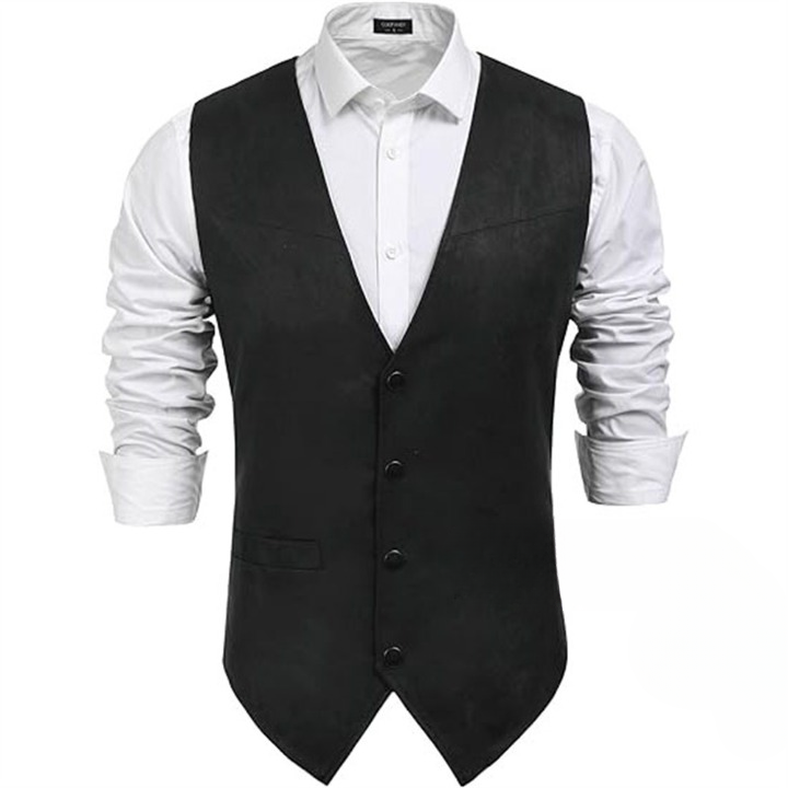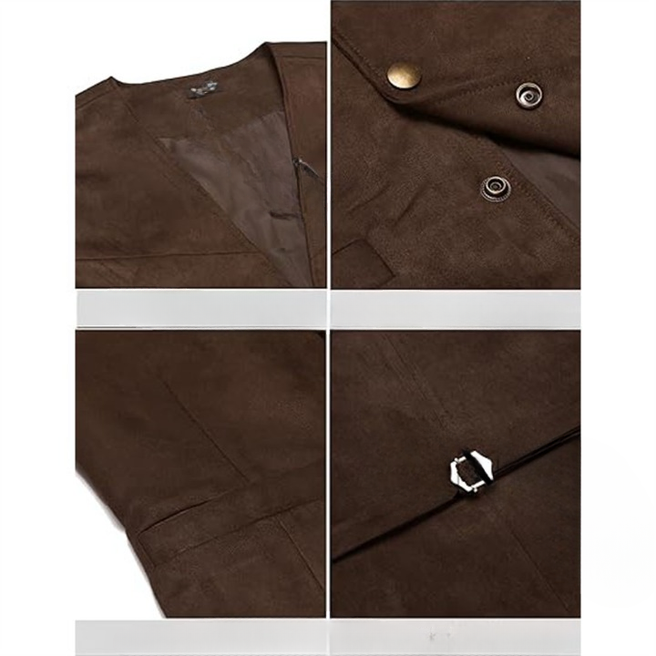 Optez pour un style décontracté avec notre gilet de costume en suédine pour homme. Sa coupe tendance et son col large offrent un confort optimal pour toutes vos aventures. La fermeture par 4 pressions permet une ouverture et une fermeture faciles, idéales pour un usage quotidien.