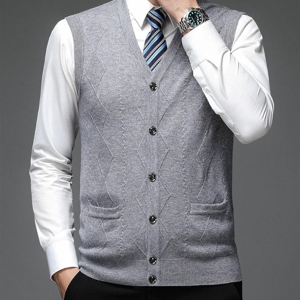 Son col en V affine votre carrure, valorise votre chemise et élève instantanément votre tenue. Il ajoute ce supplément de style qui montre que vous maîtrisez votre image sans jamais en faire trop.