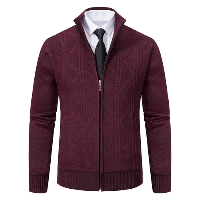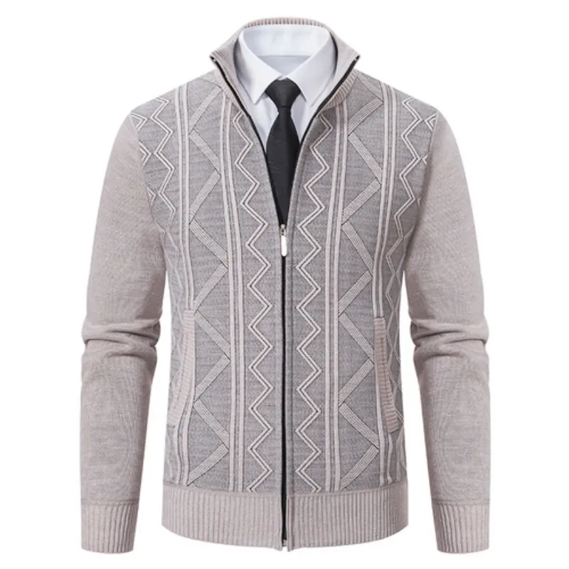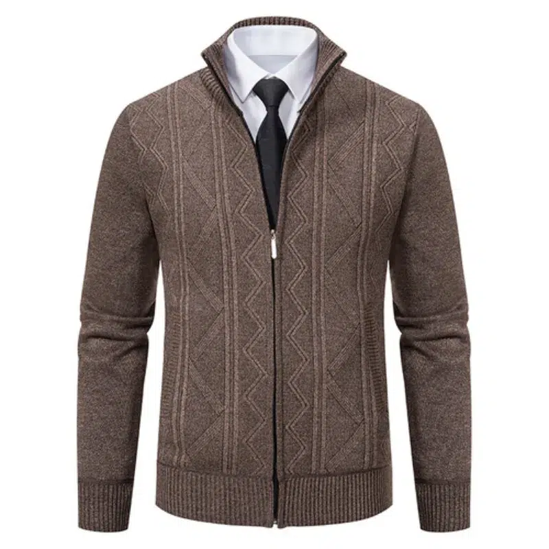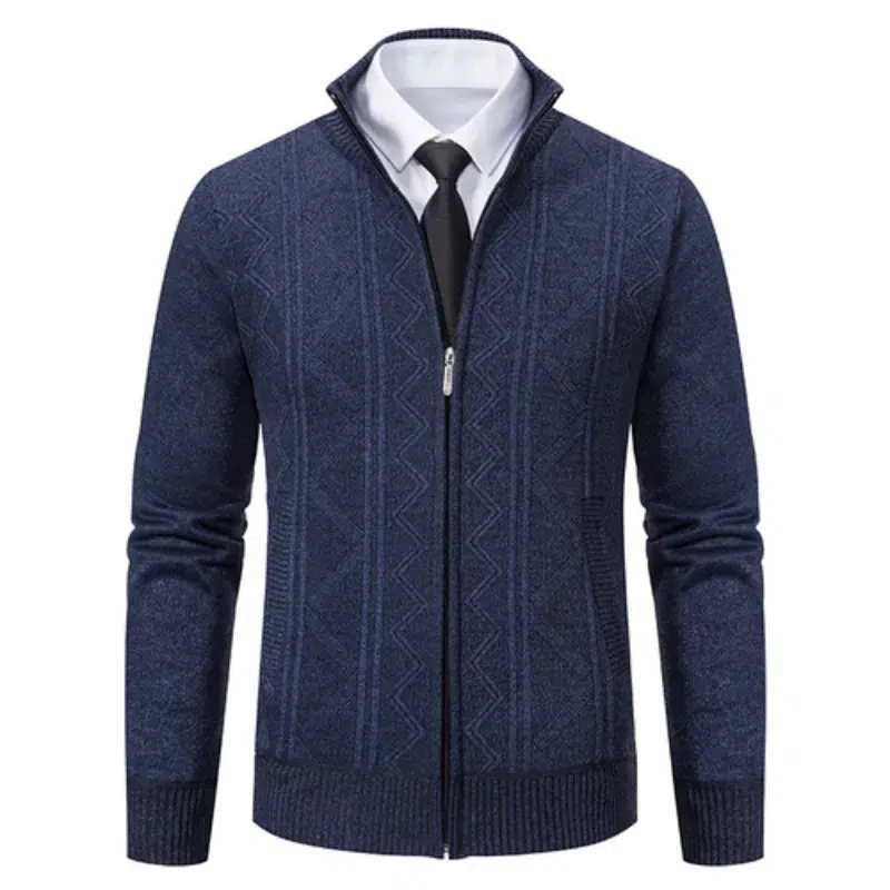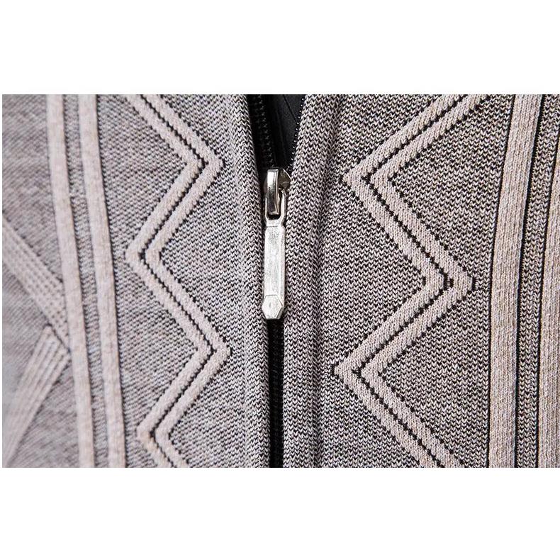 Ce gilet zippé à col montant et bords à côtes pour homme ressemble aux gilets élégants portés dans les 70's : le look de ce gilet au style tricoté à lignes verticales et en zig zag semble emprunté à cette période. Cependant il est également très tendance avec sa fermeture éclair et son col montant côtelé, ce qui ne se faisait pas à l'époque!